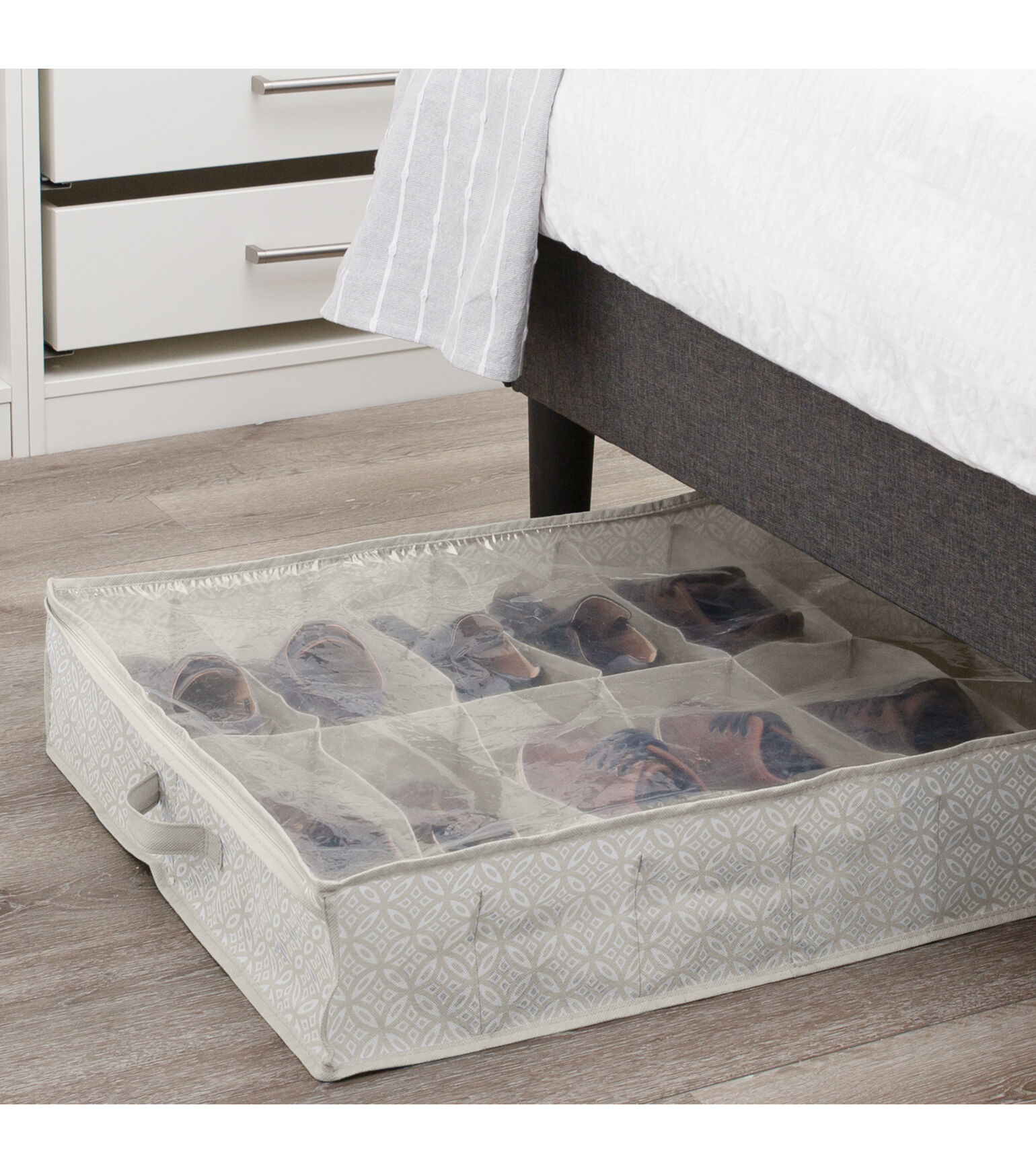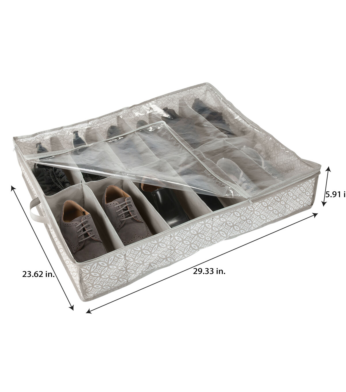 Simplify 29 Gray 12 Pair Boho Print Under the Bed Shoe Storage Bag