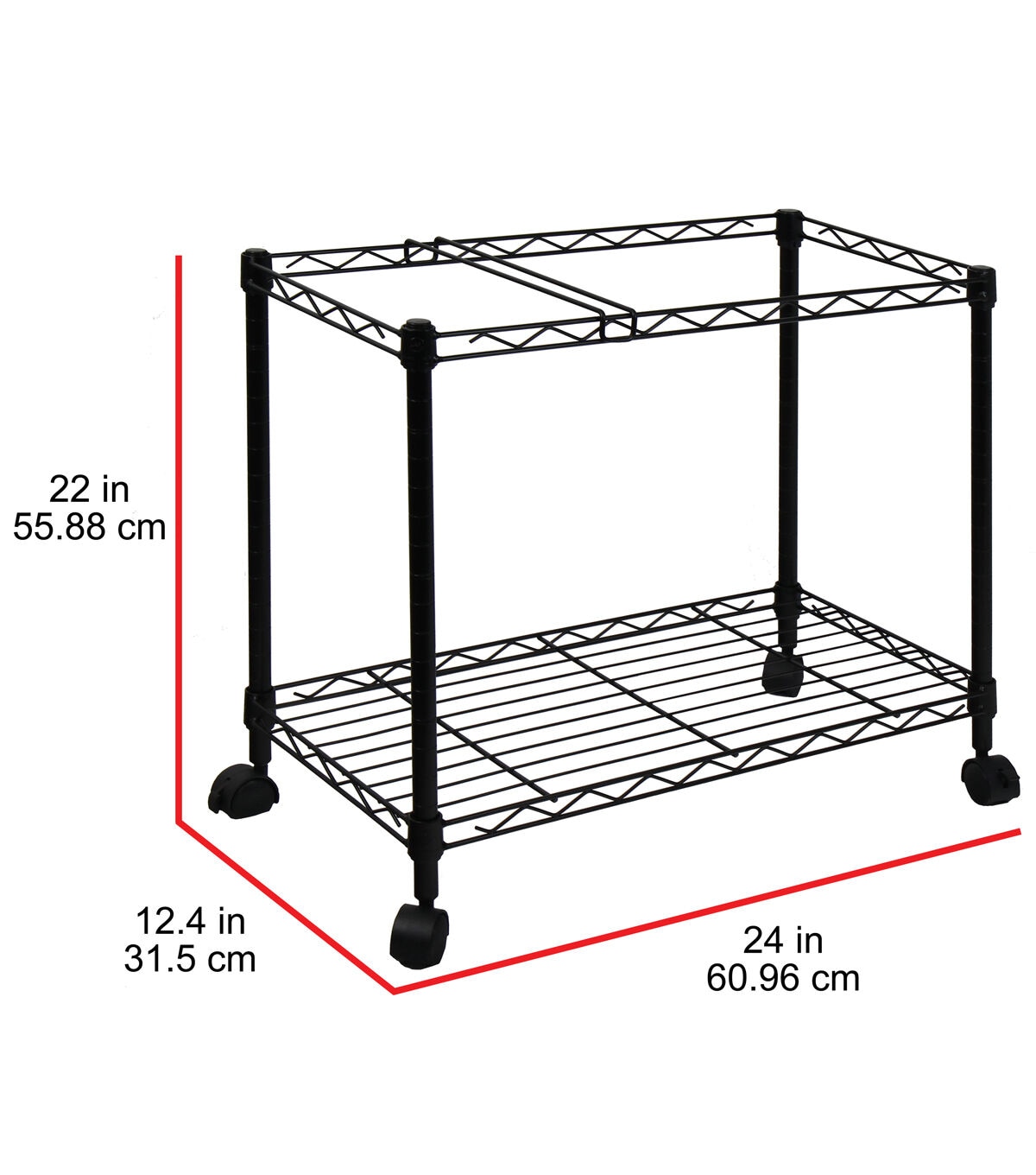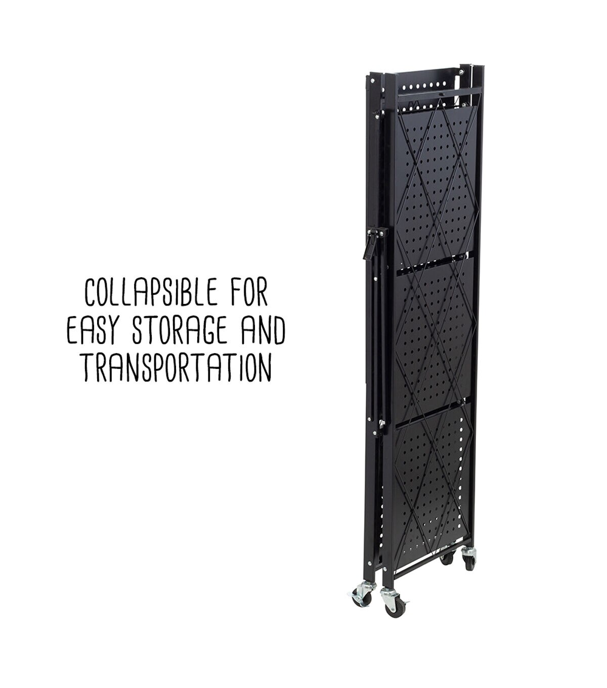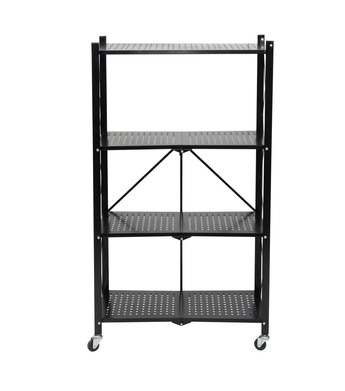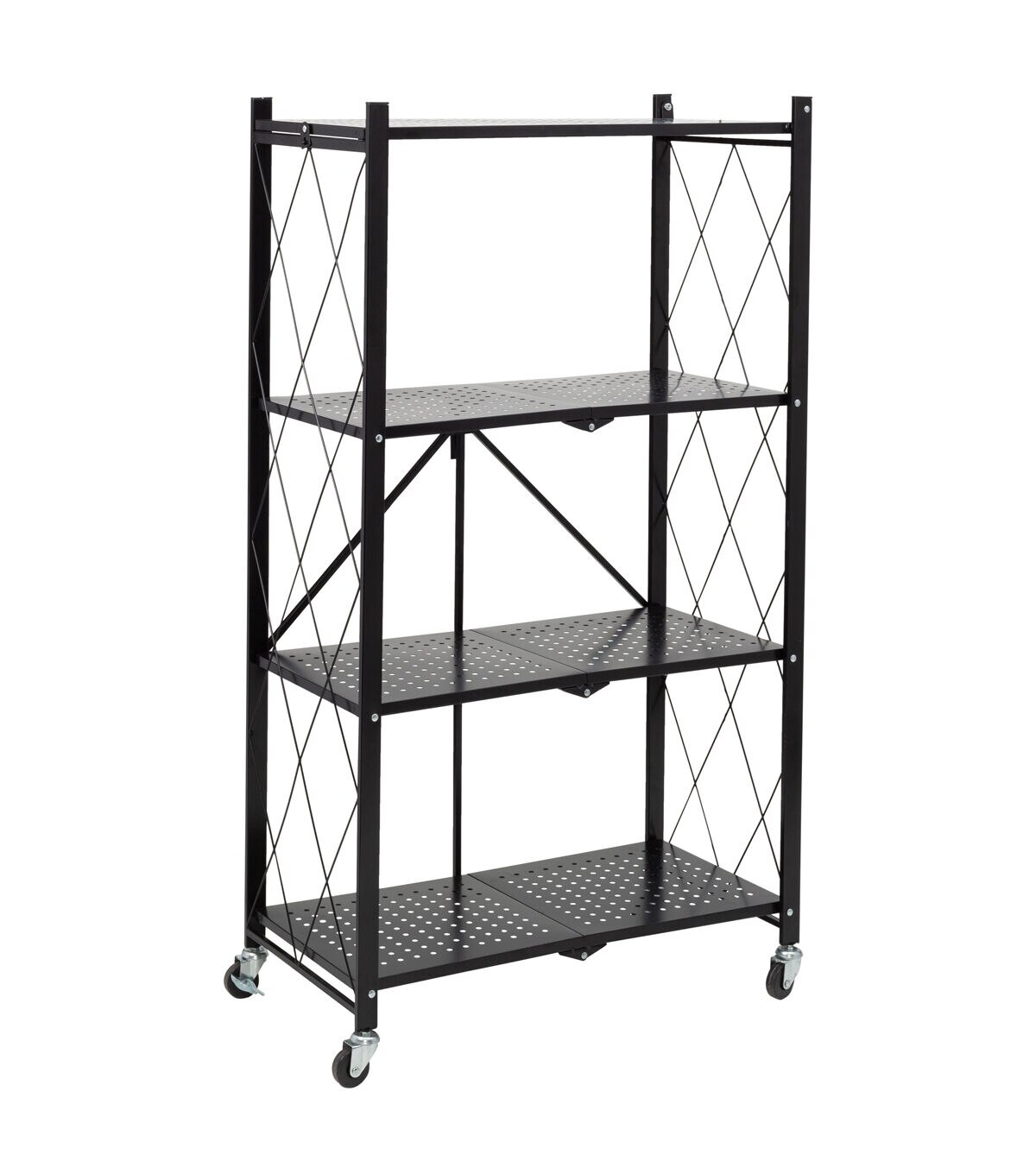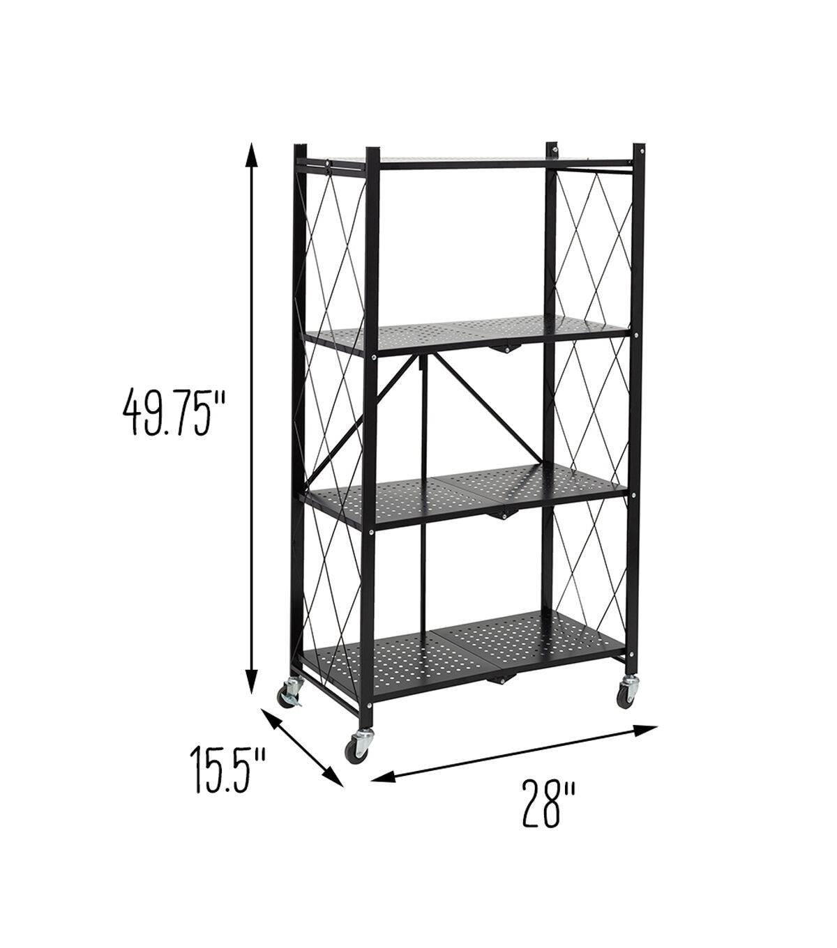Honey Can Do 28 x 49.5 Black Folding 4 Tier Metal Rolling Shelf