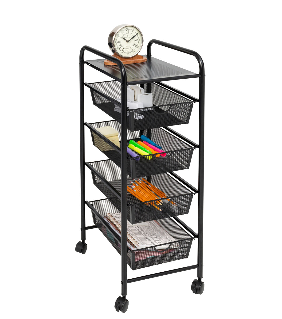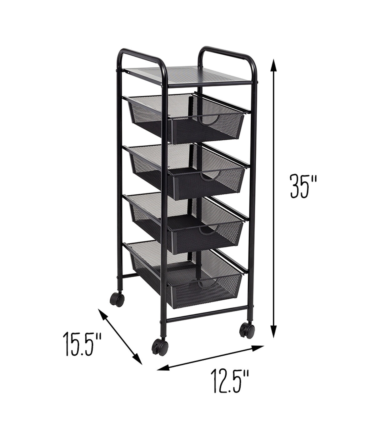 Honey Can Do 35 Black 4 Drawer Mesh Rolling Storage Cart With Shelf