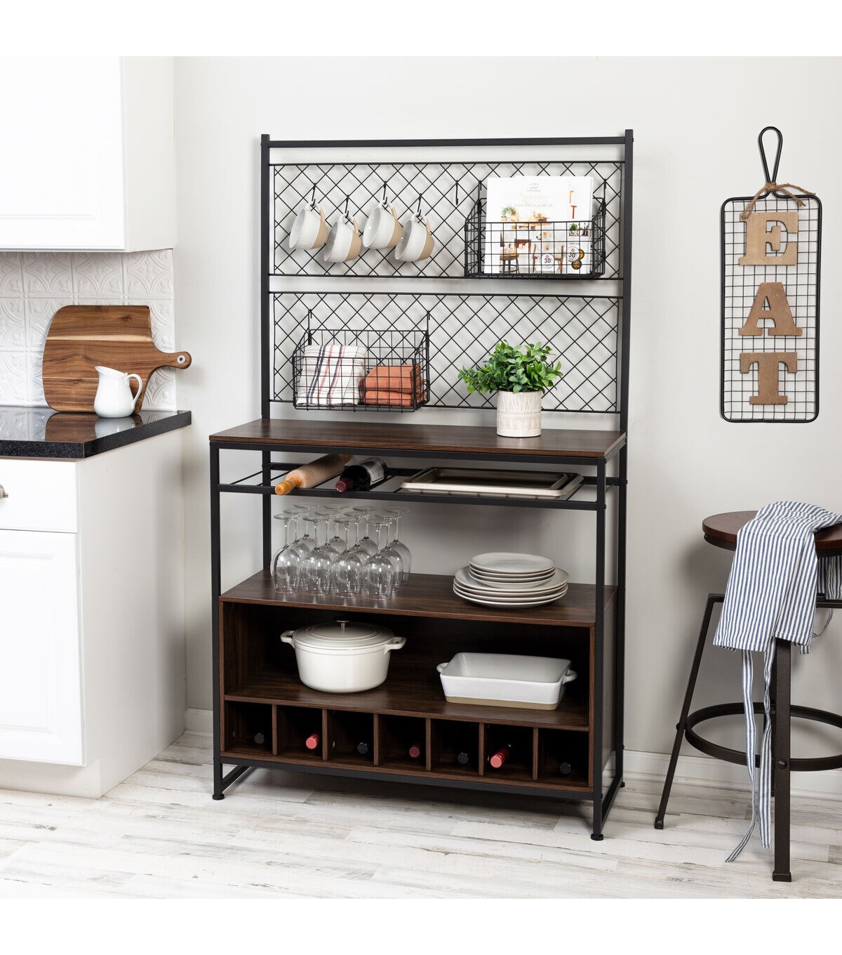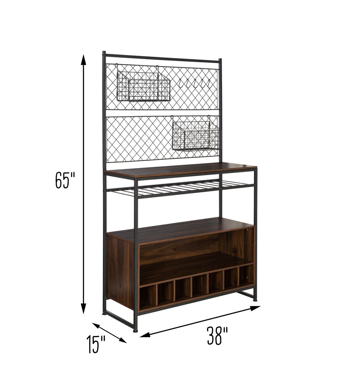 Honey Can Do 65 Black & Walnut Kitchen Bakers Rack With Wine Storage