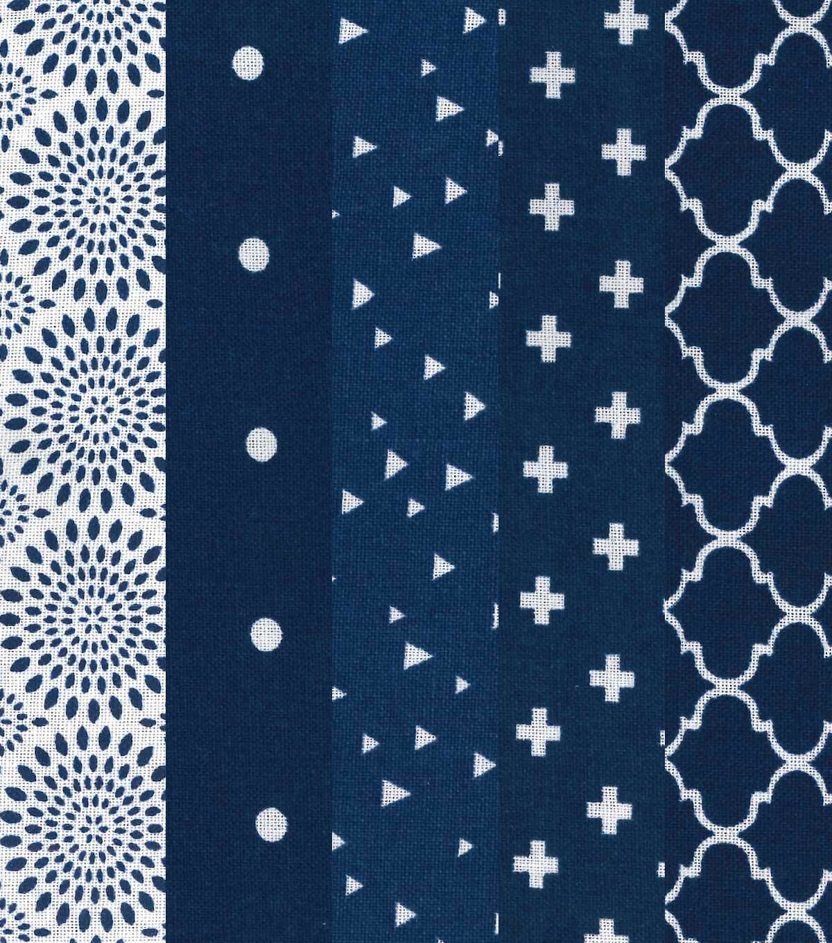 5pc Celestial Cool Batik Metallic Cotton Fabric Quarter Bundle