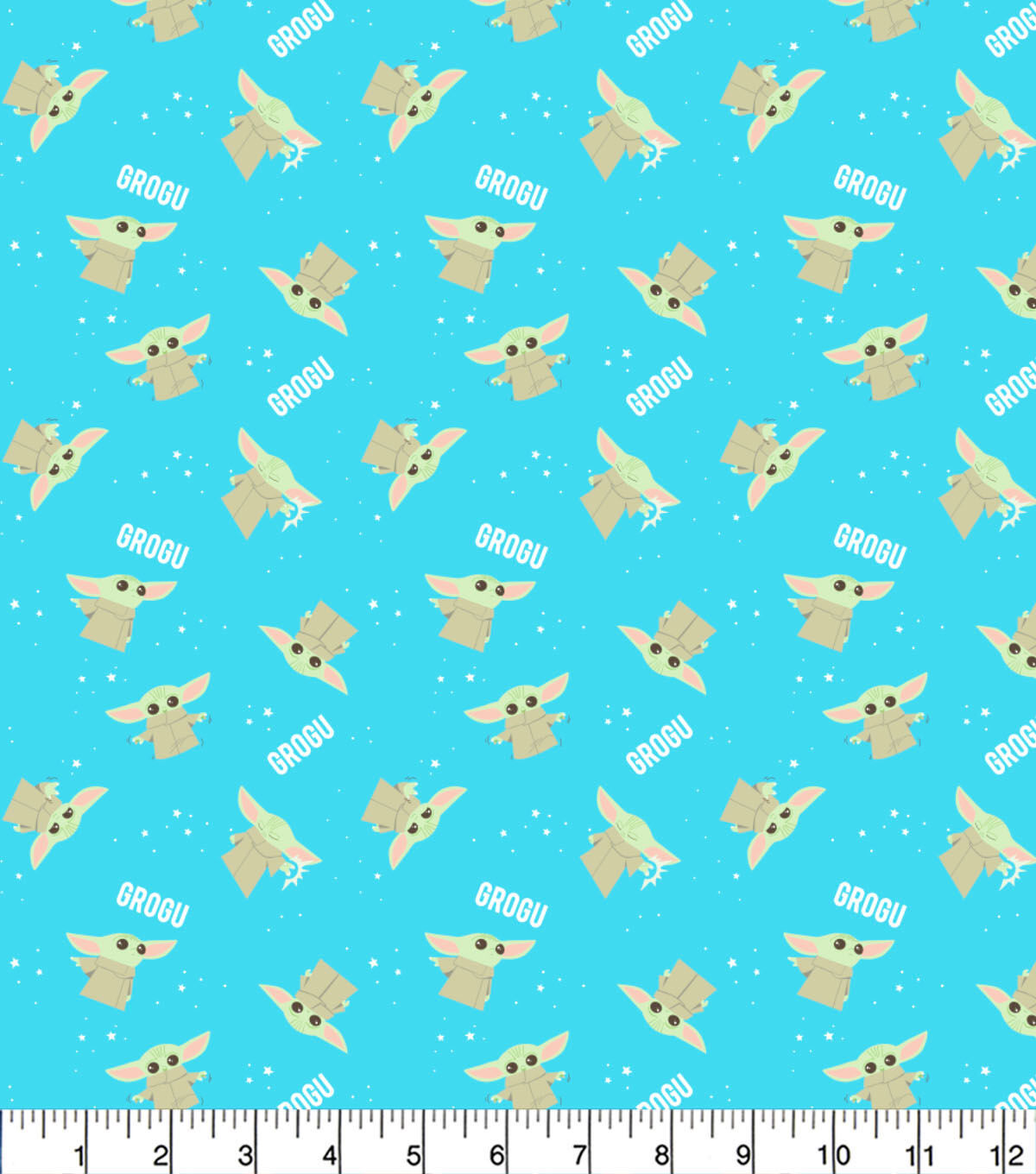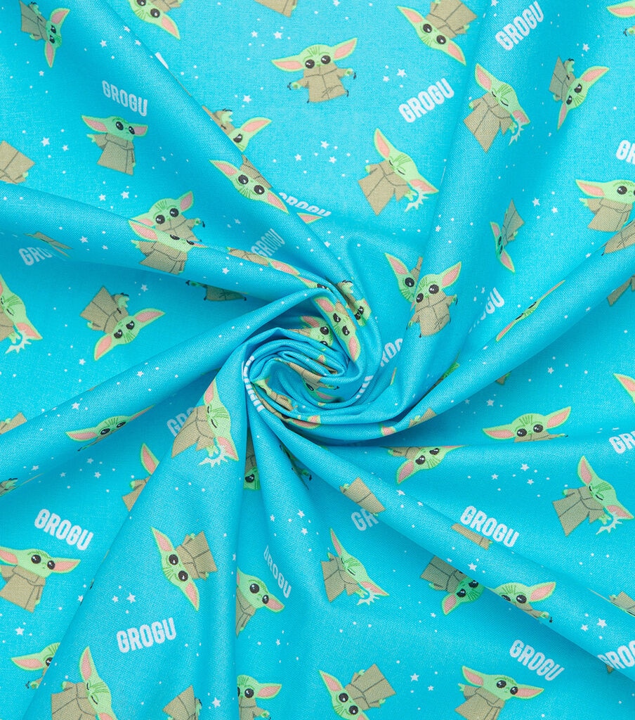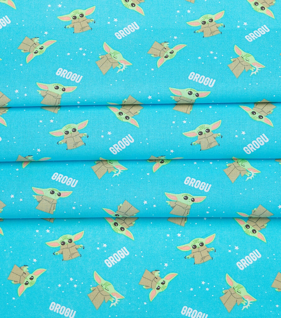 Mandalorian Grogu Poses Stars Cotton Fabric