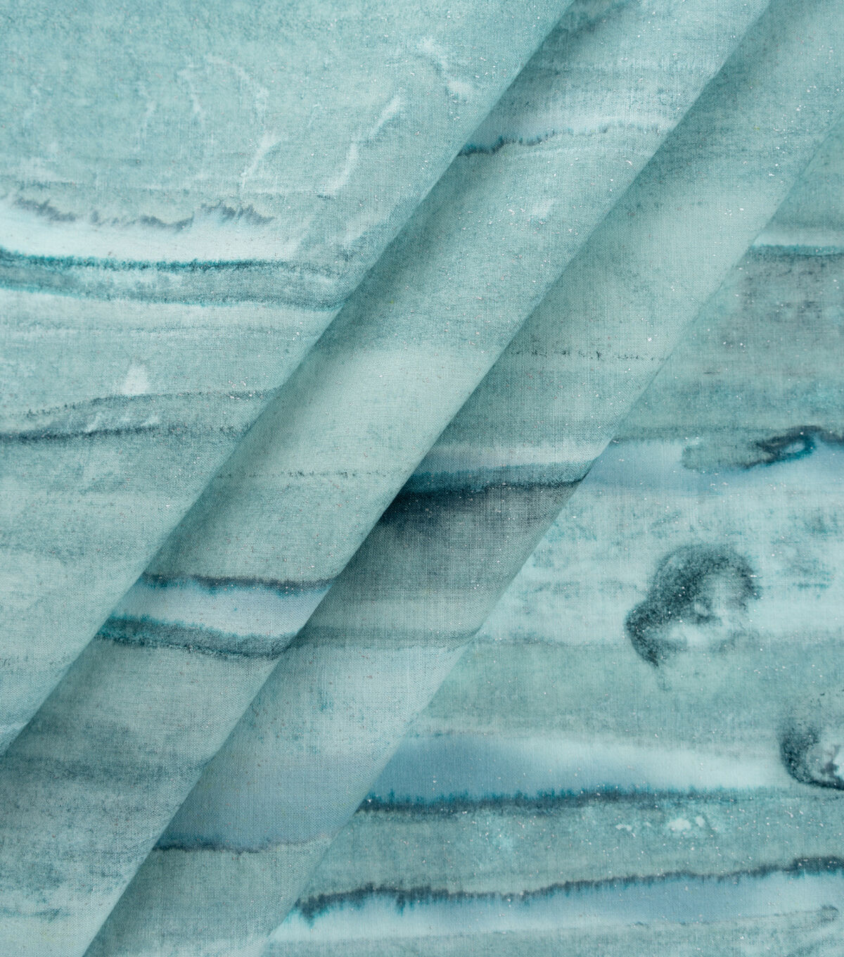 Blue Waves Quilt Metallic Cotton Fabric by Keepsake Calico