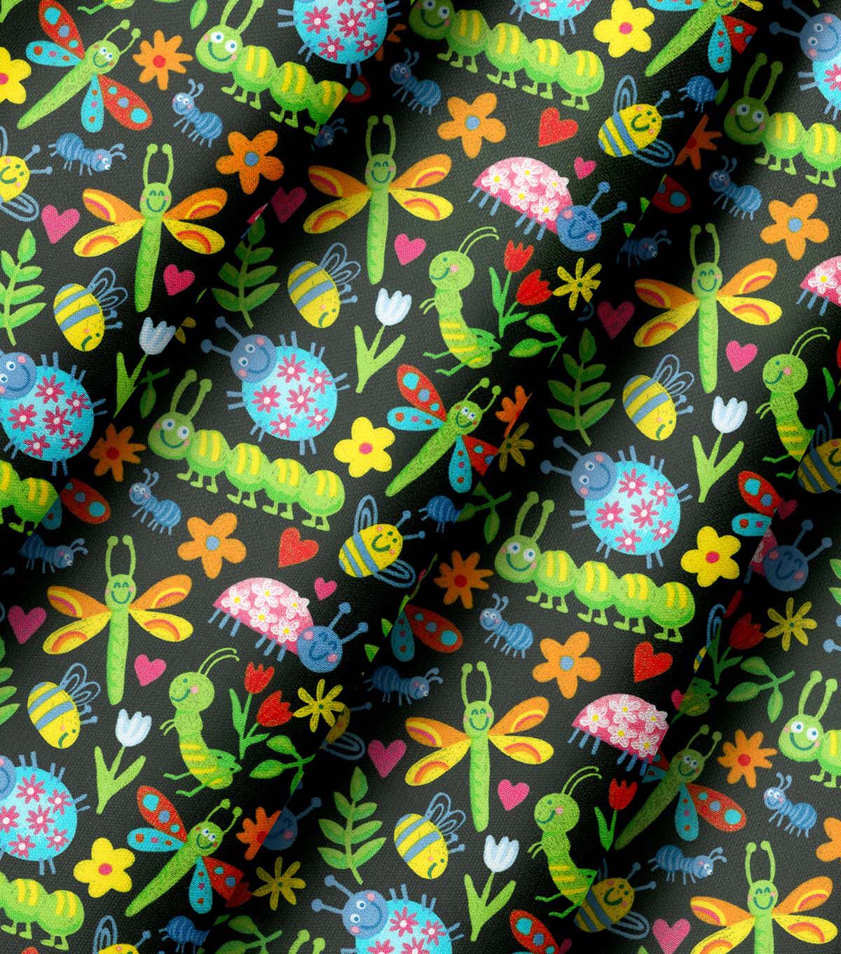Robert Kaufman Doodlebugs on Black Novelty Cotton Fabric