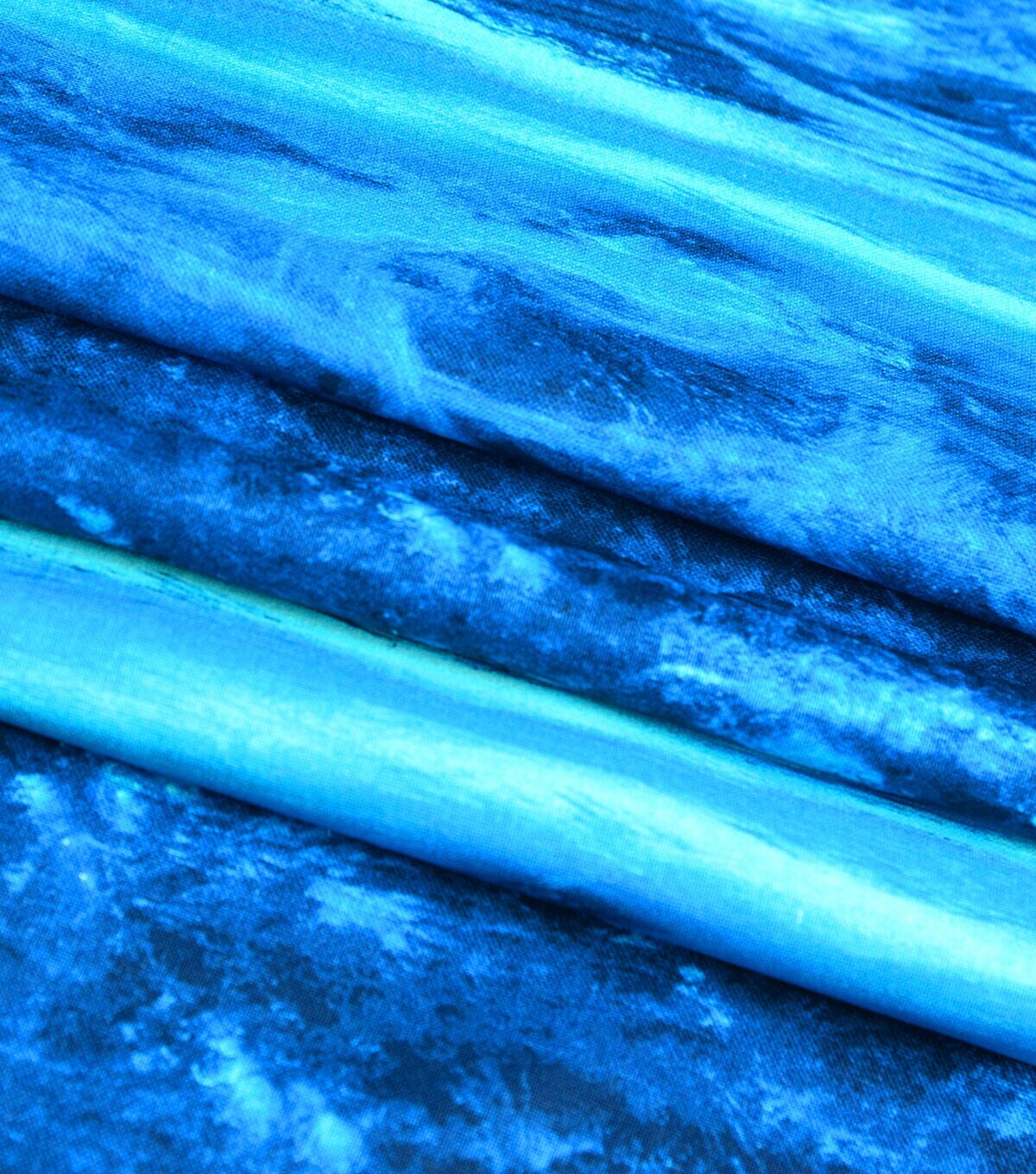 Blue Textured Tonal Batik Metallic Cotton Fabric