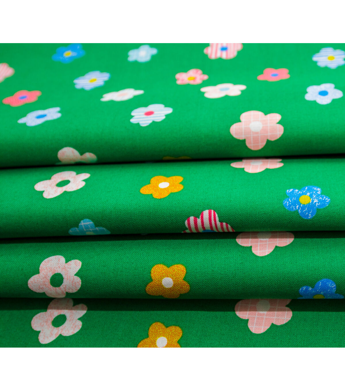 POP! Textured Flowers On Green Novelty Cotton Fabric