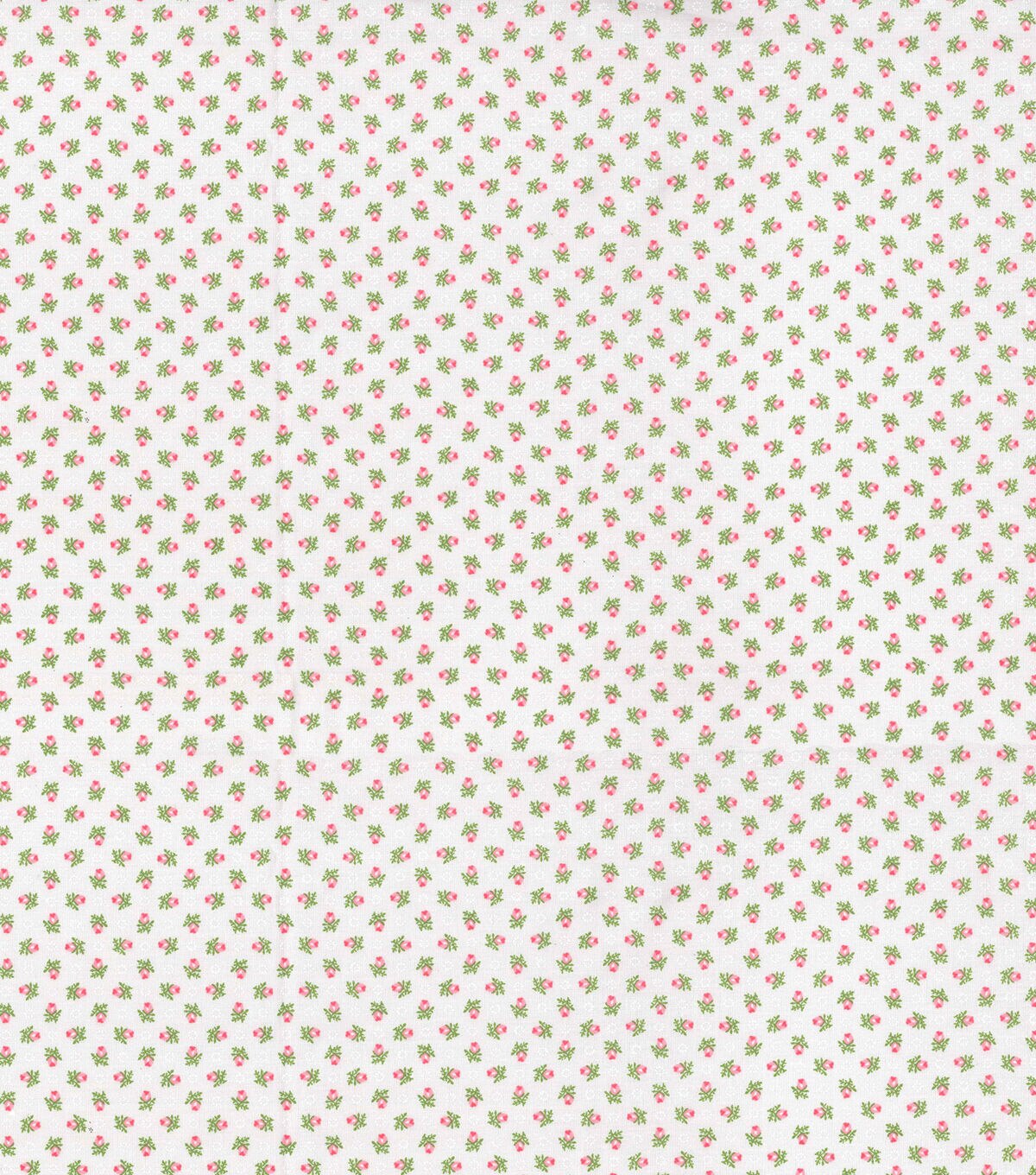 Singer Pink Flowers on White Quilt Cotton Fabric
