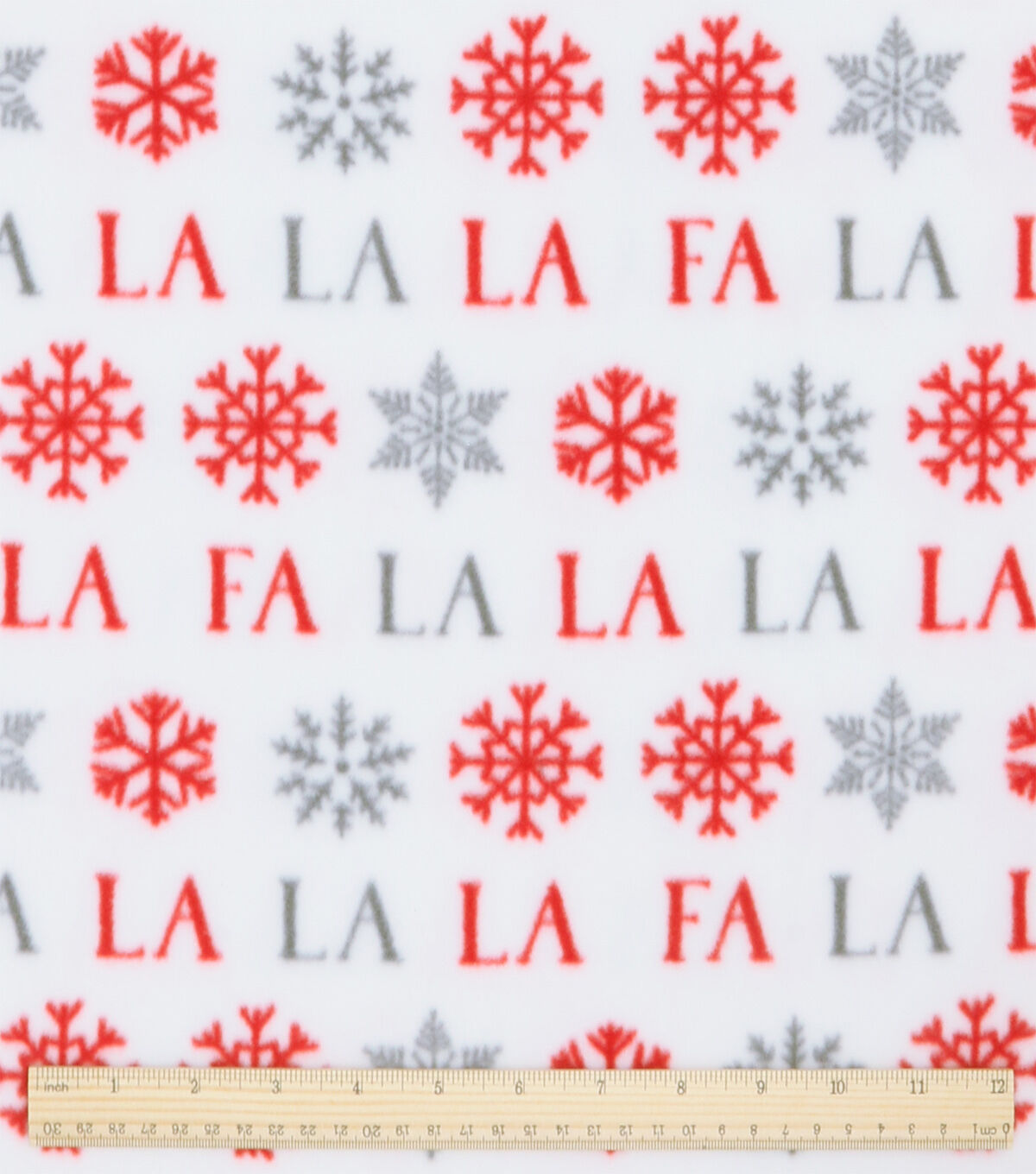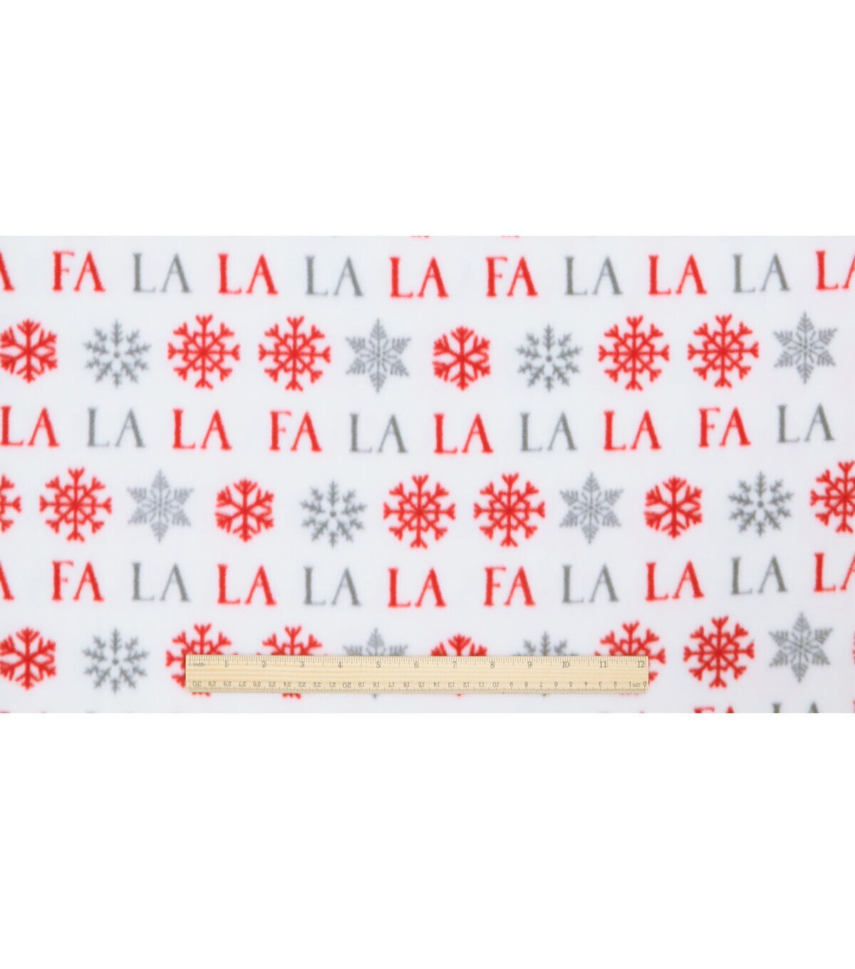 Fa La La & Snowflakes on White Anti Pill Fleece Fabric