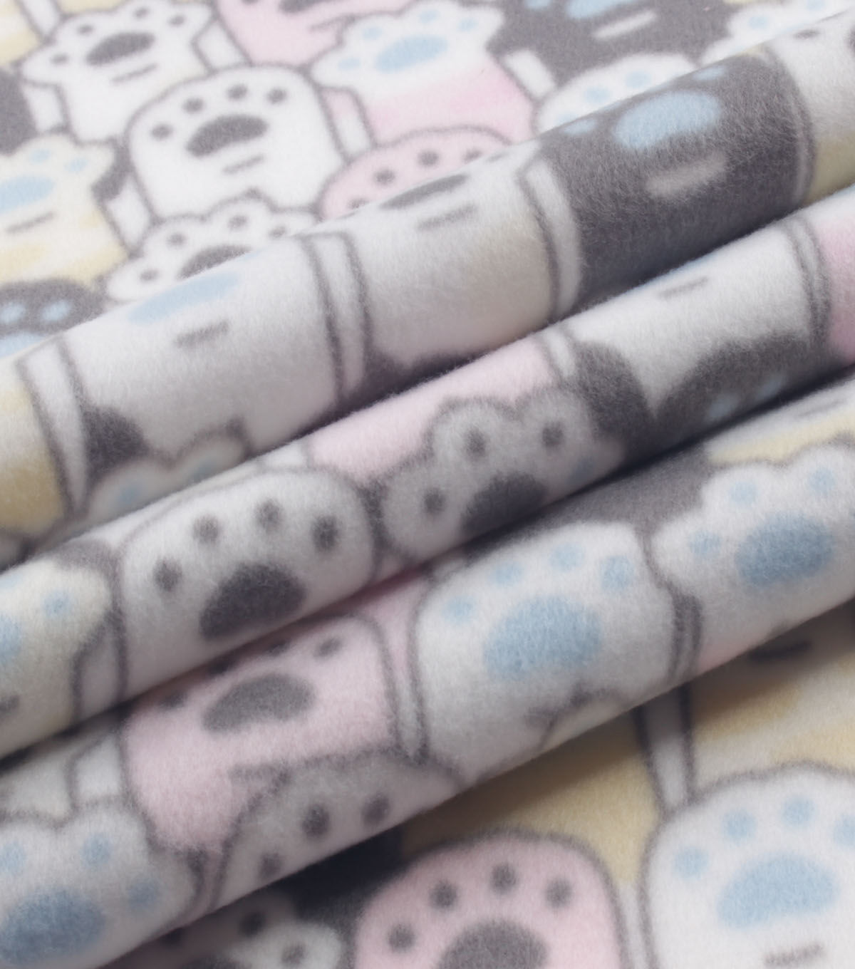 White & Pink Cat Paw Prints Blizzard Fleece Fabric