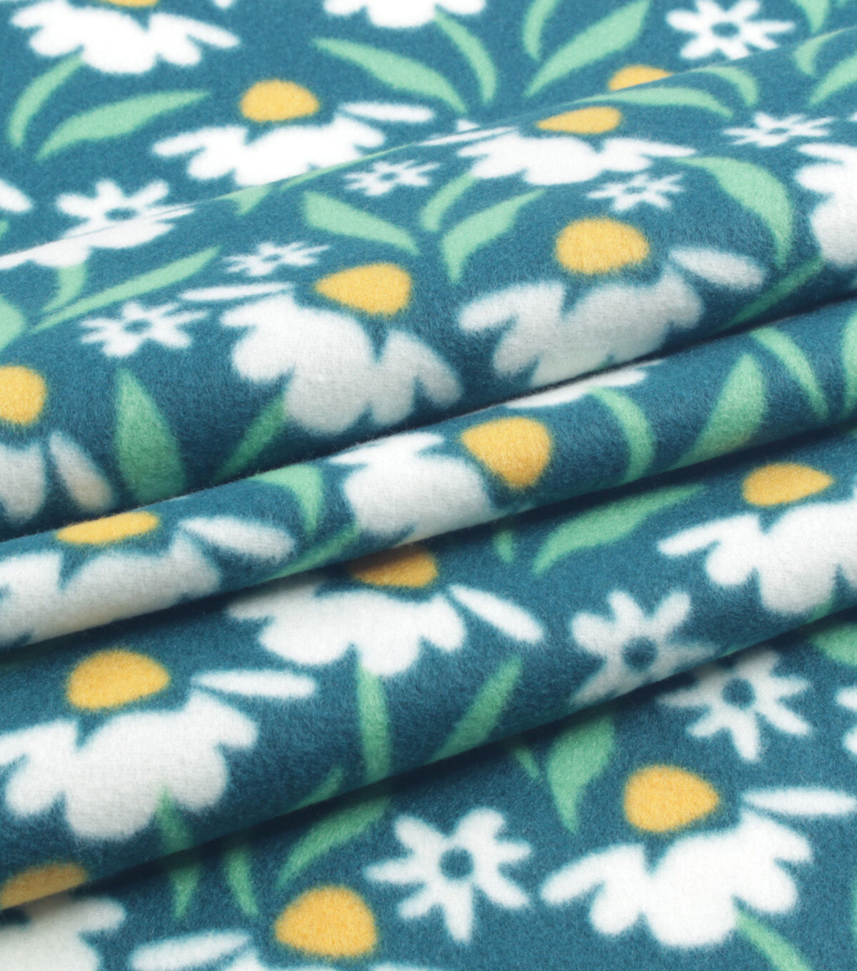 Green White Floral Blizzard Prints Fleece Fabric