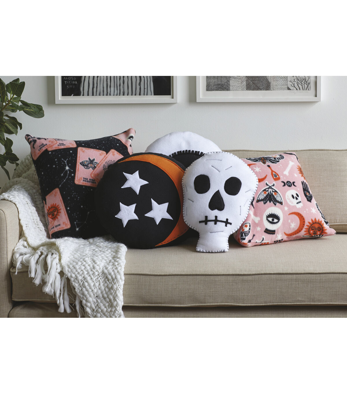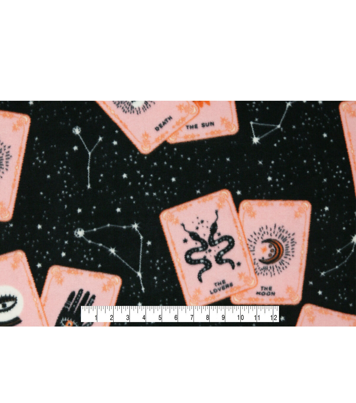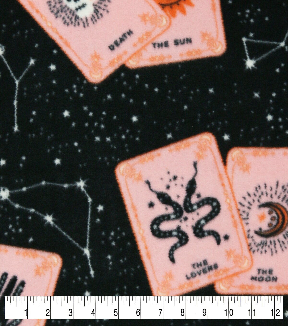 Orange Tarot Cards on Black Anti Pill Fleece Fabric