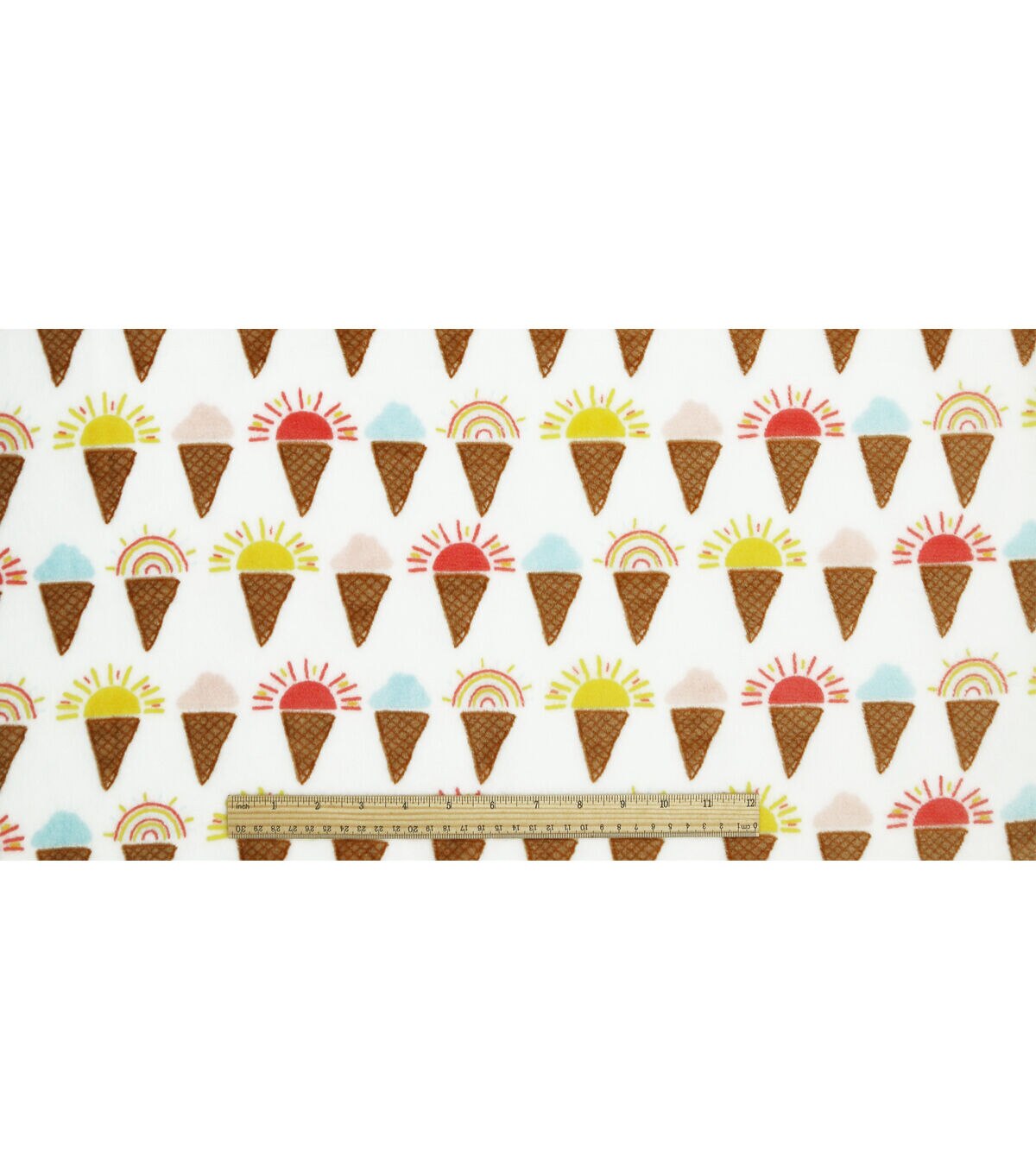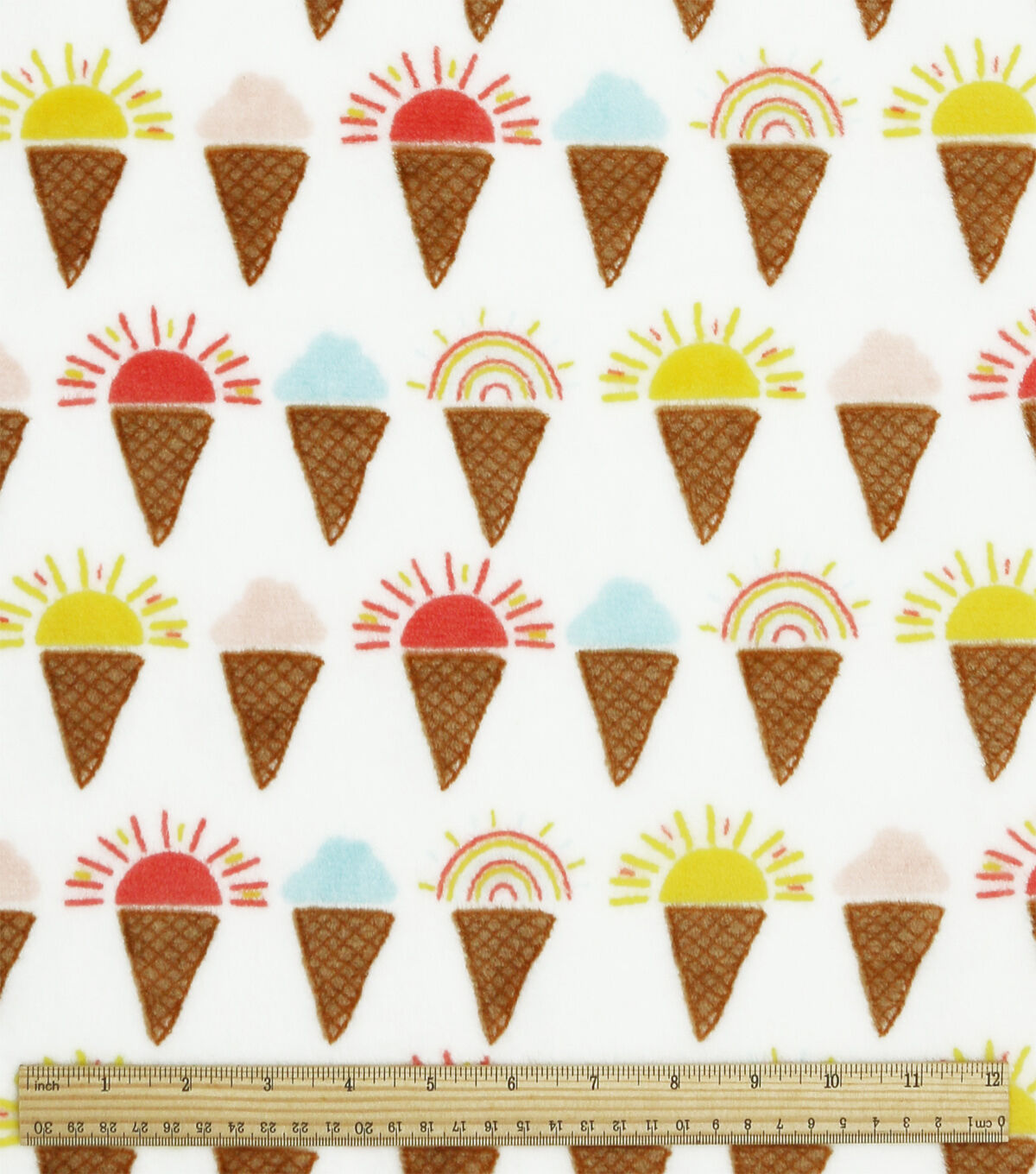 Summer Sunshine & Rainbow Cones On White Sew Lush Fleece Fabric
