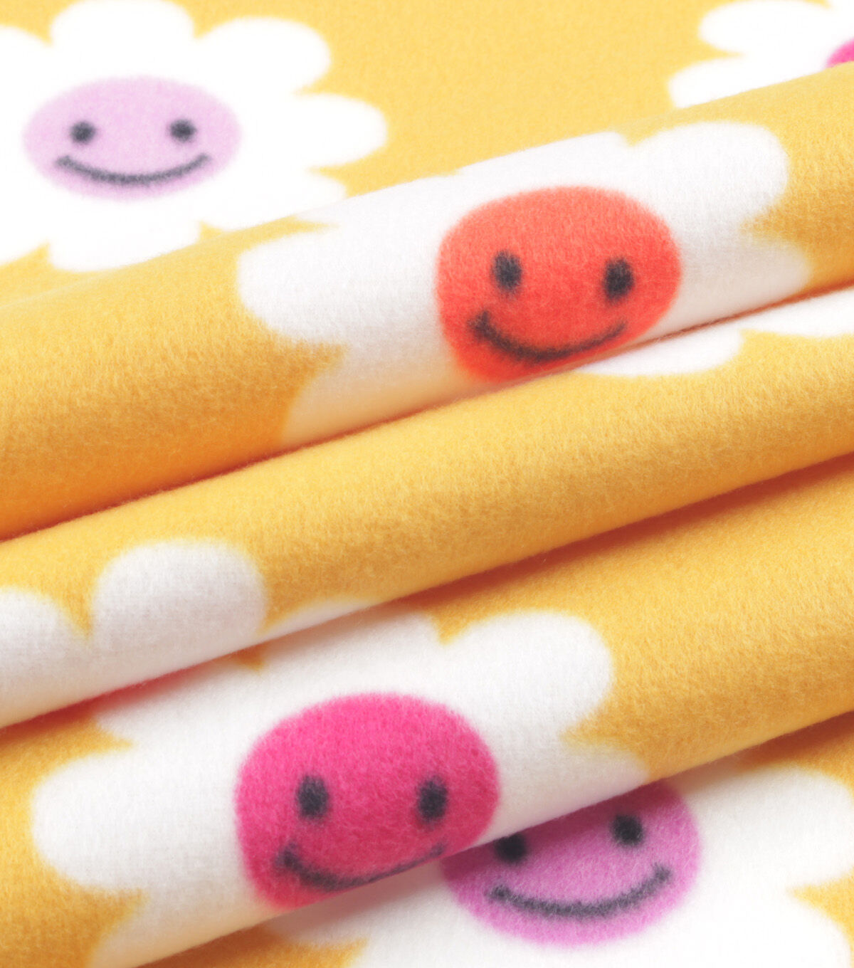 Smiley Face Flowers Blizzard Prints Fleece Fabric