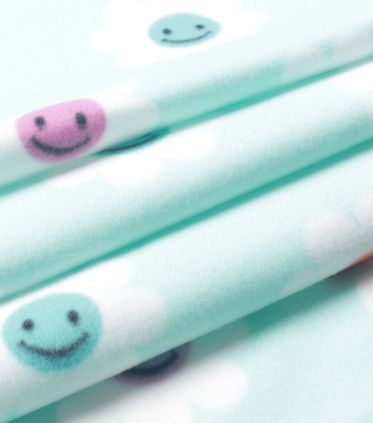 Blue Smiley Face Flowers Blizzard Fleece Fabric