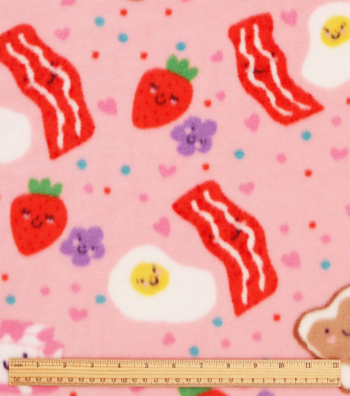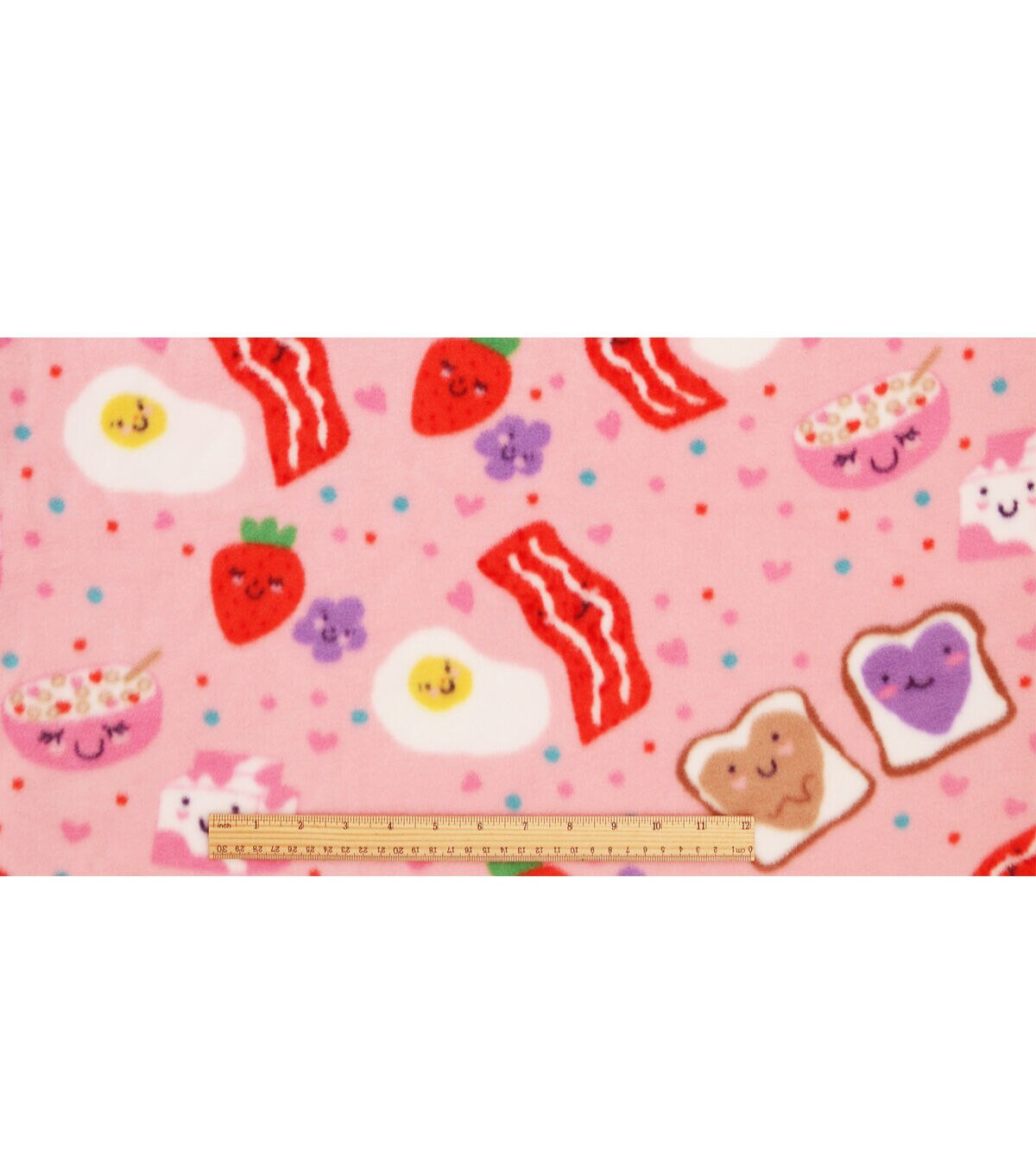 Breakfast Foods on Pink Anti Pill Plush Fleece Fabric by POP!