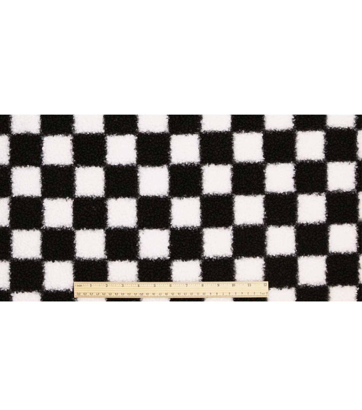Black & White Check Printed Teddy Fur Sherpa Fleece Fabric