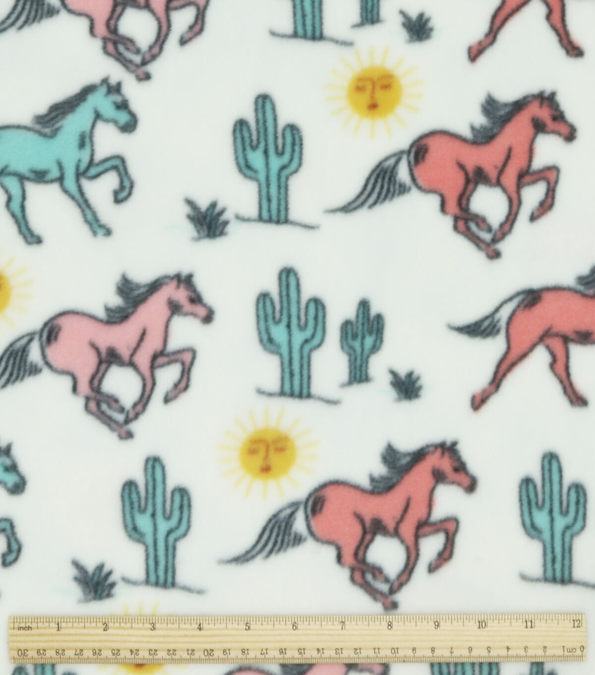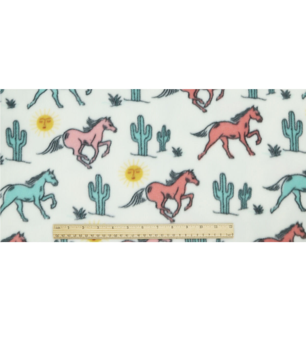 Horses in the Desert on White Anti Pill Fleece Fabric