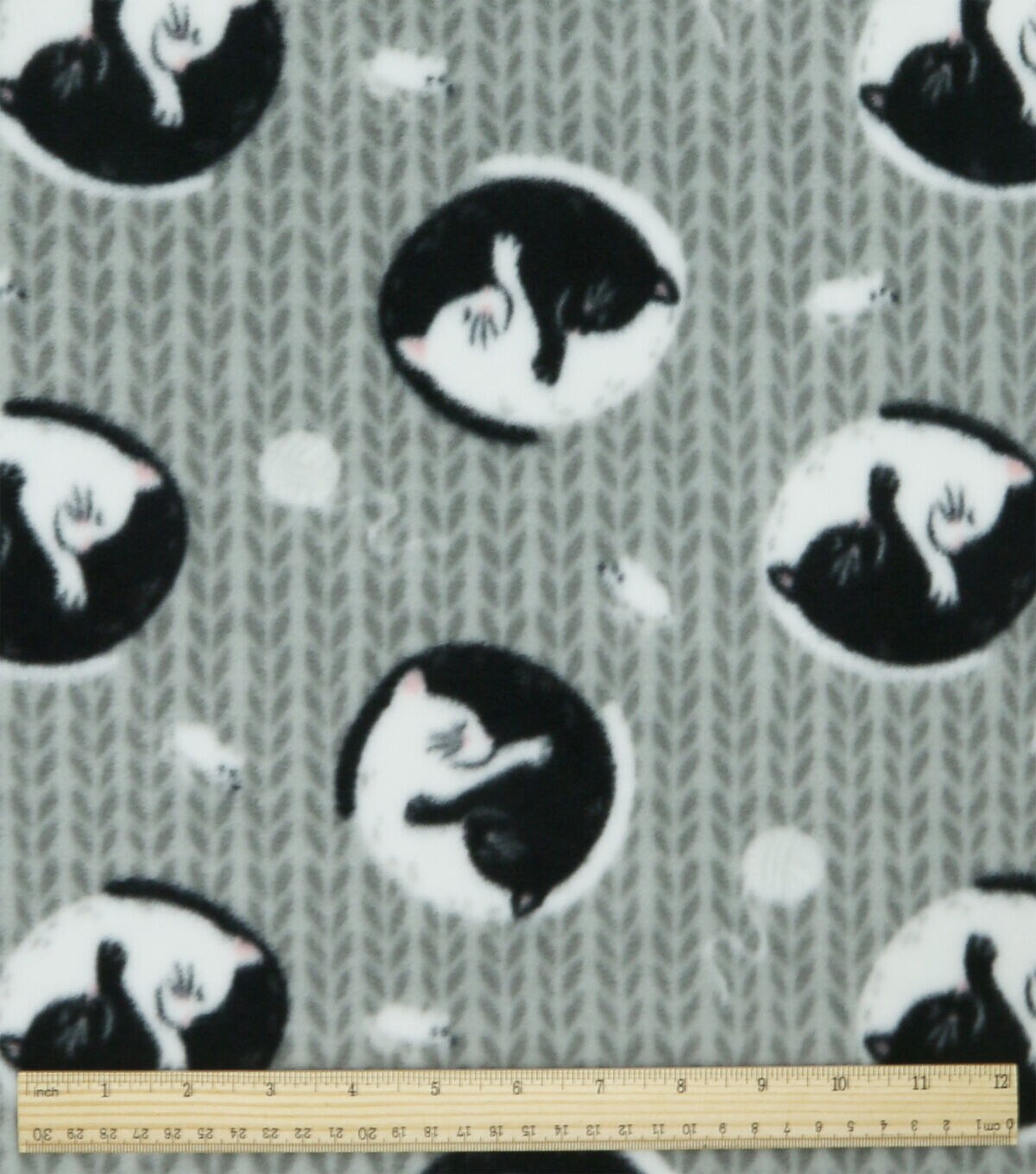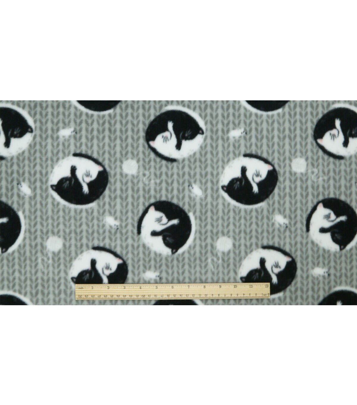 Yin Yang Cats on Gray Anti Pill Fleece Fabric