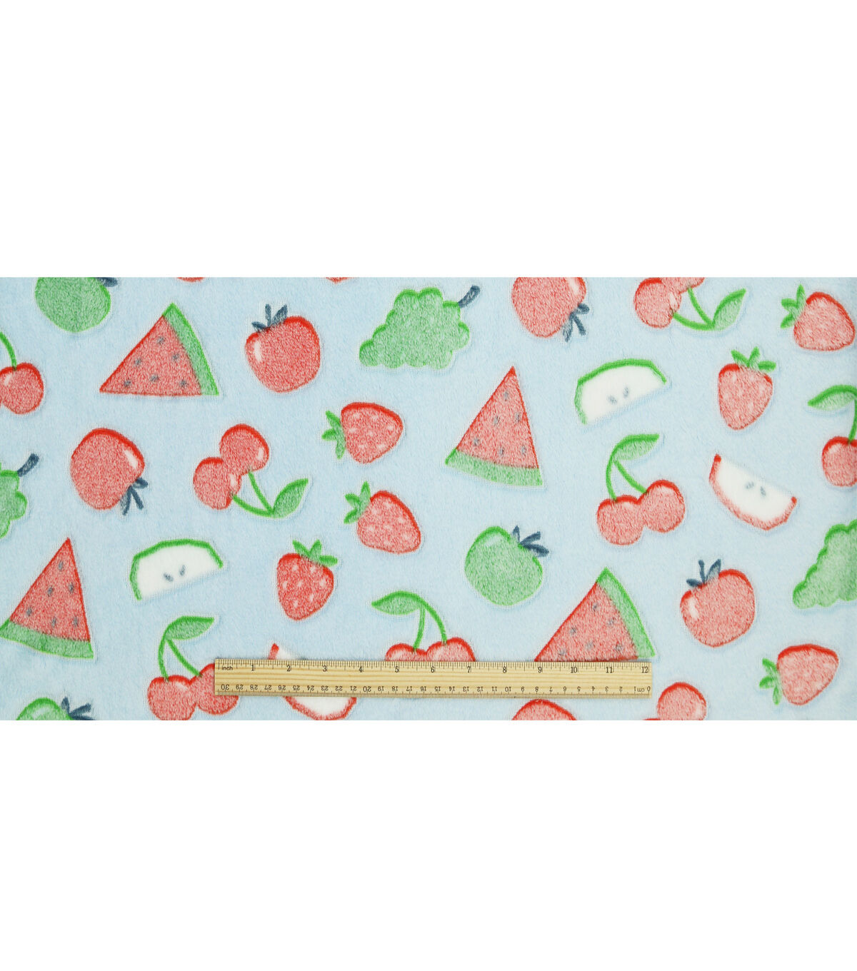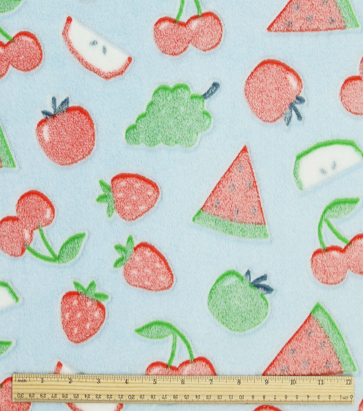 Embossed Fruit On Blue Sew Lush Fleece Fabric