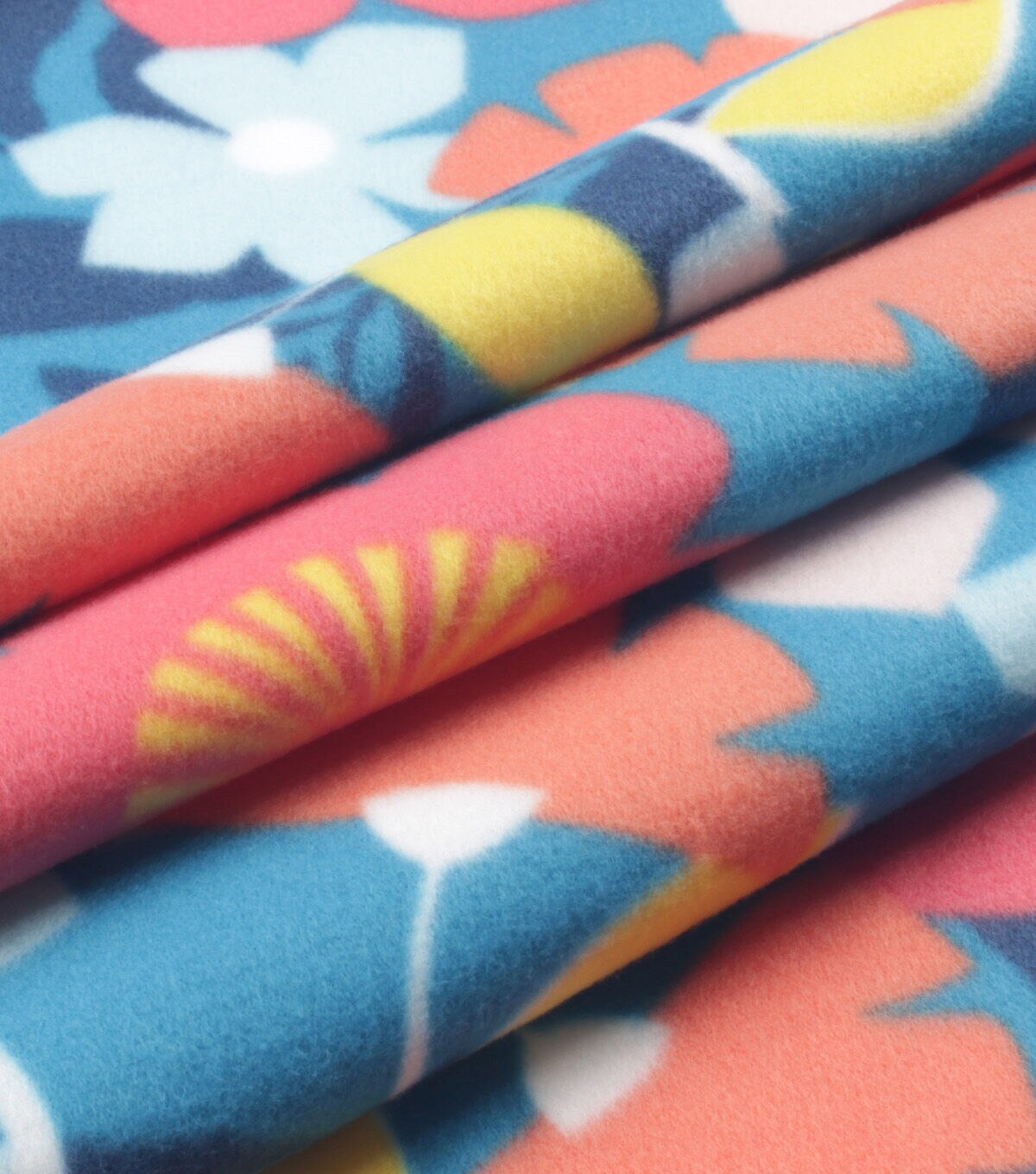 Bold Summer Floral on Blue Blizzard Fleece Fabric