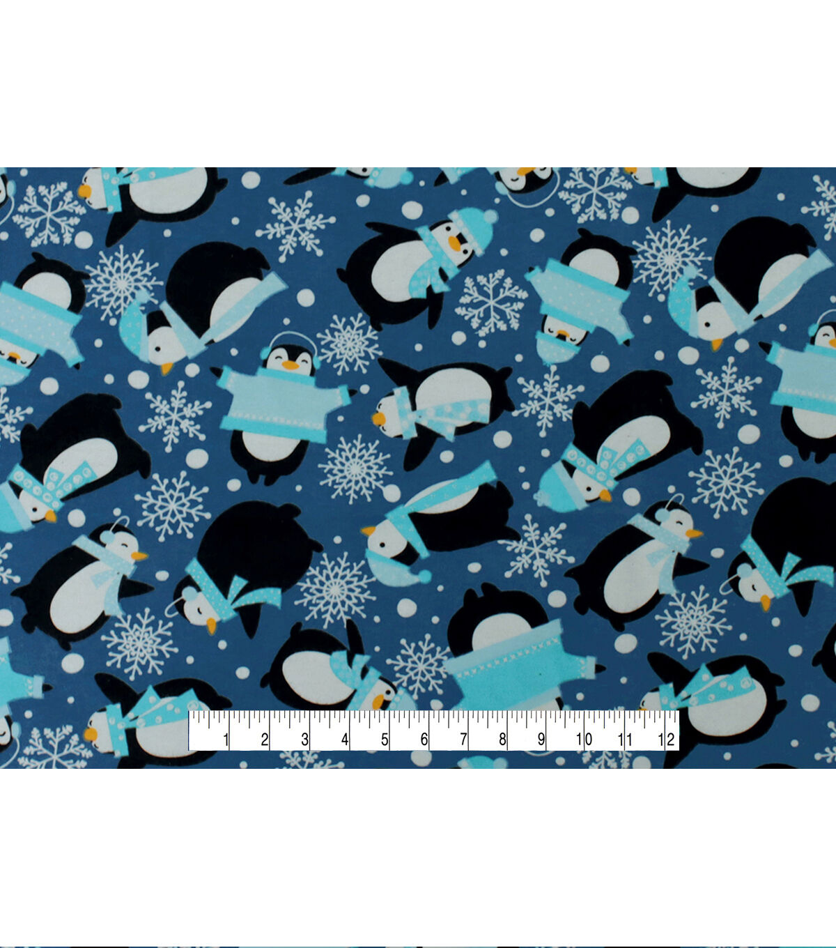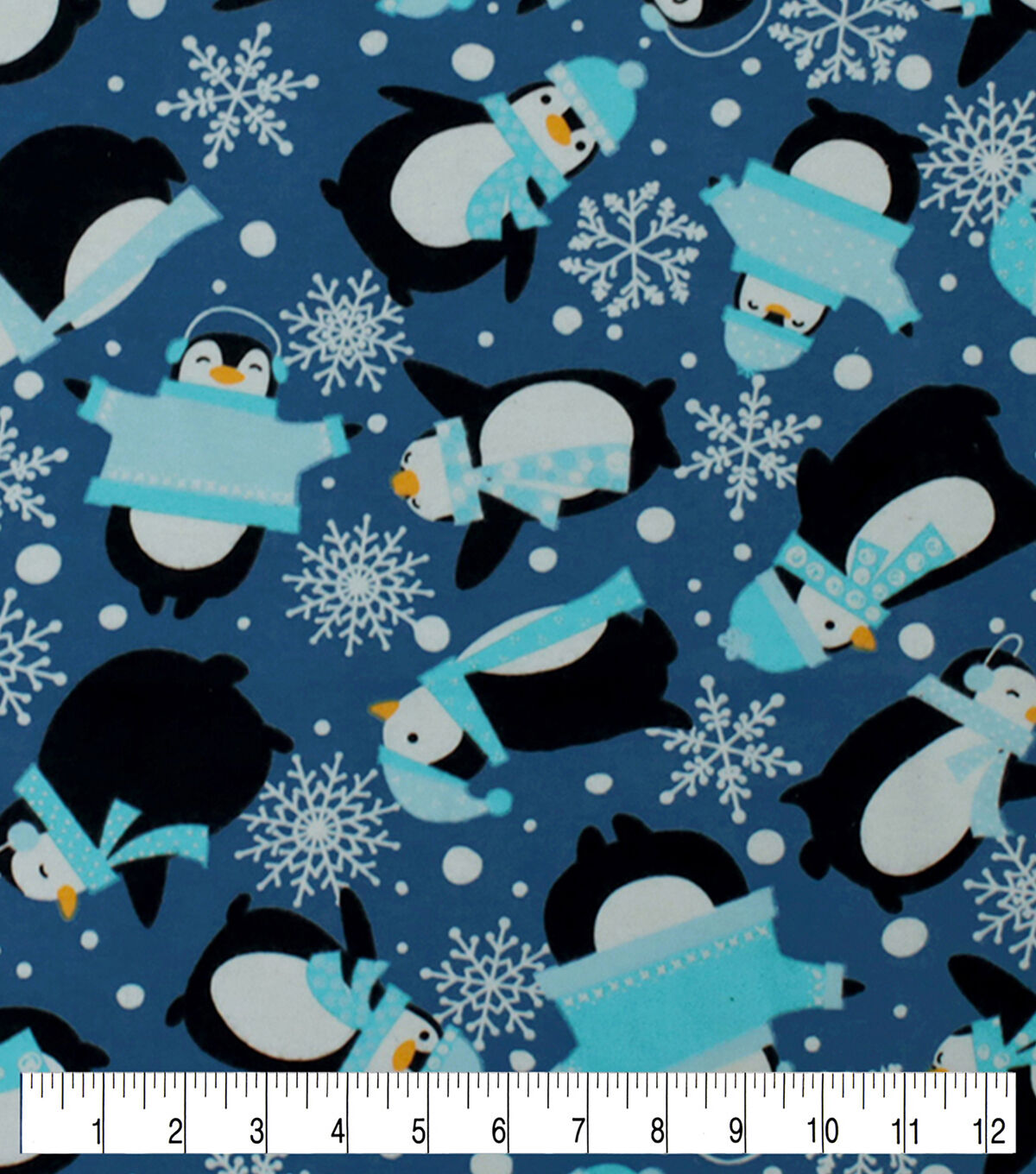 Penguins & Snowflakes on Blue Super Snuggle Christmas Flannel Fabric