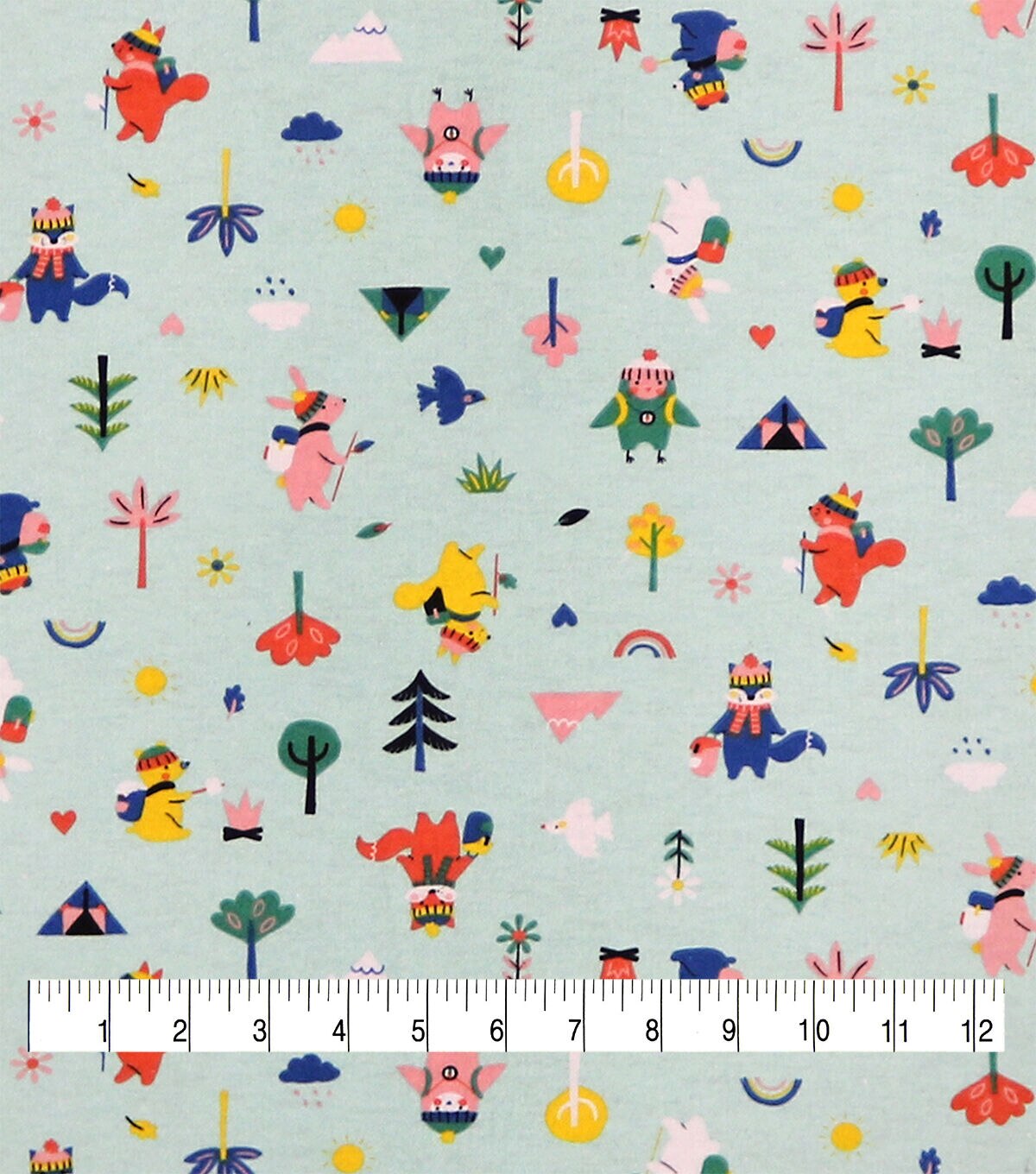 Sketched Animal Camping Super Snuggle Flannel Fabric