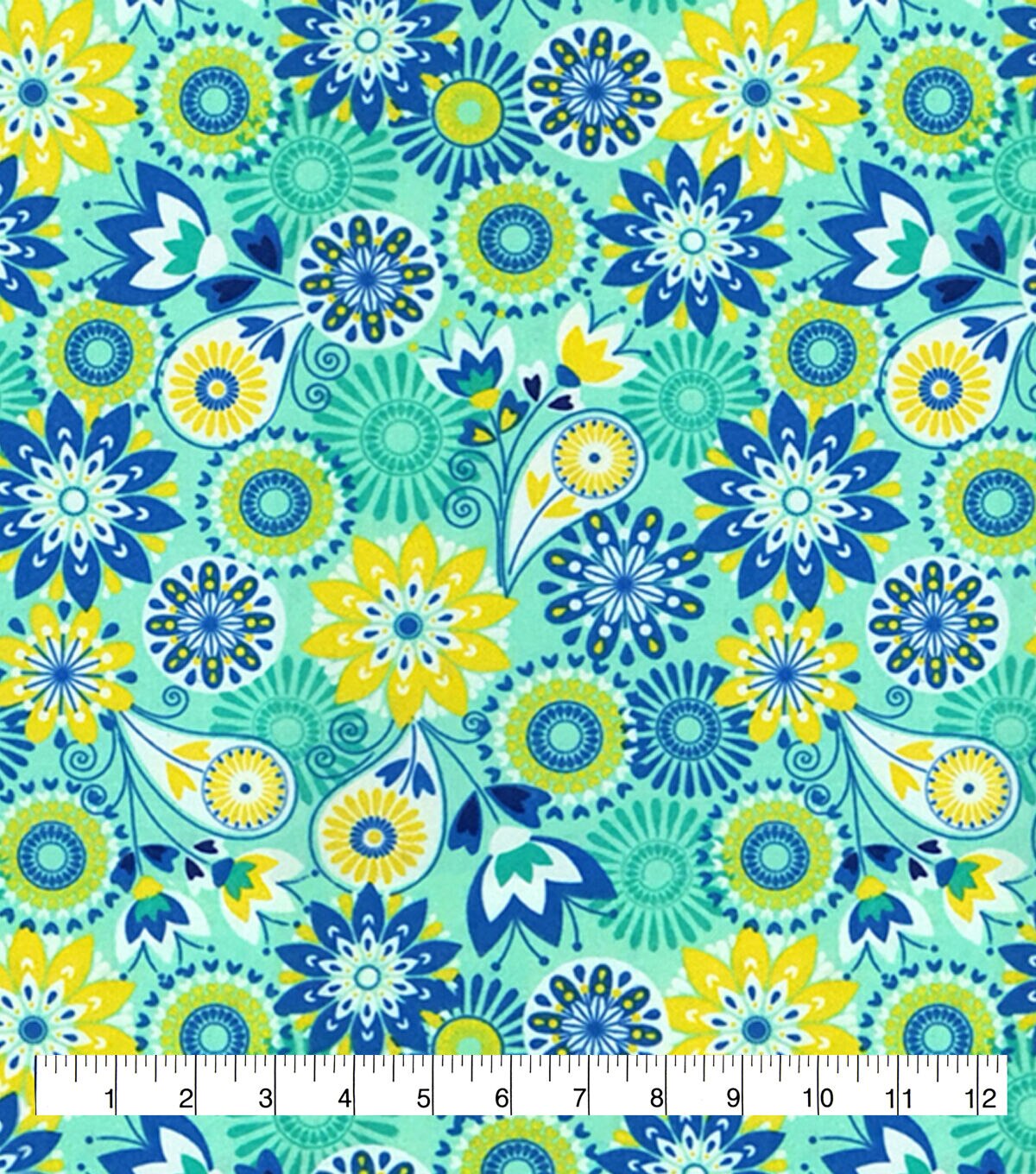 Floral Medallion Aqua Super Snuggle Flannel Fabric