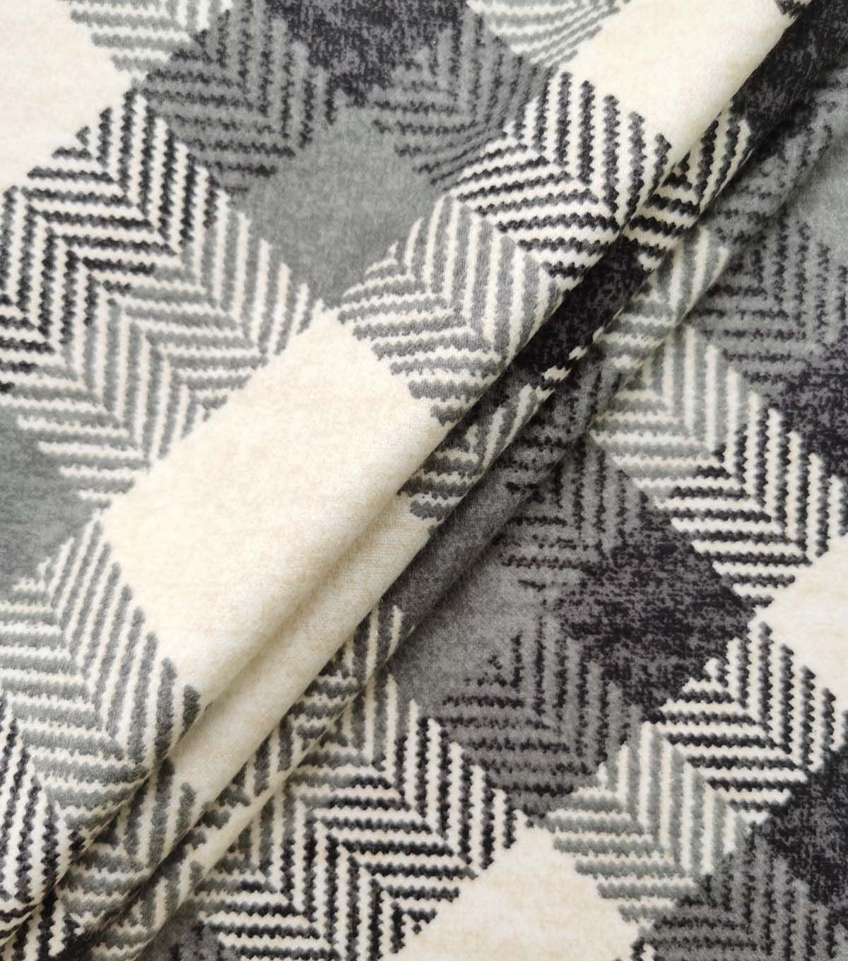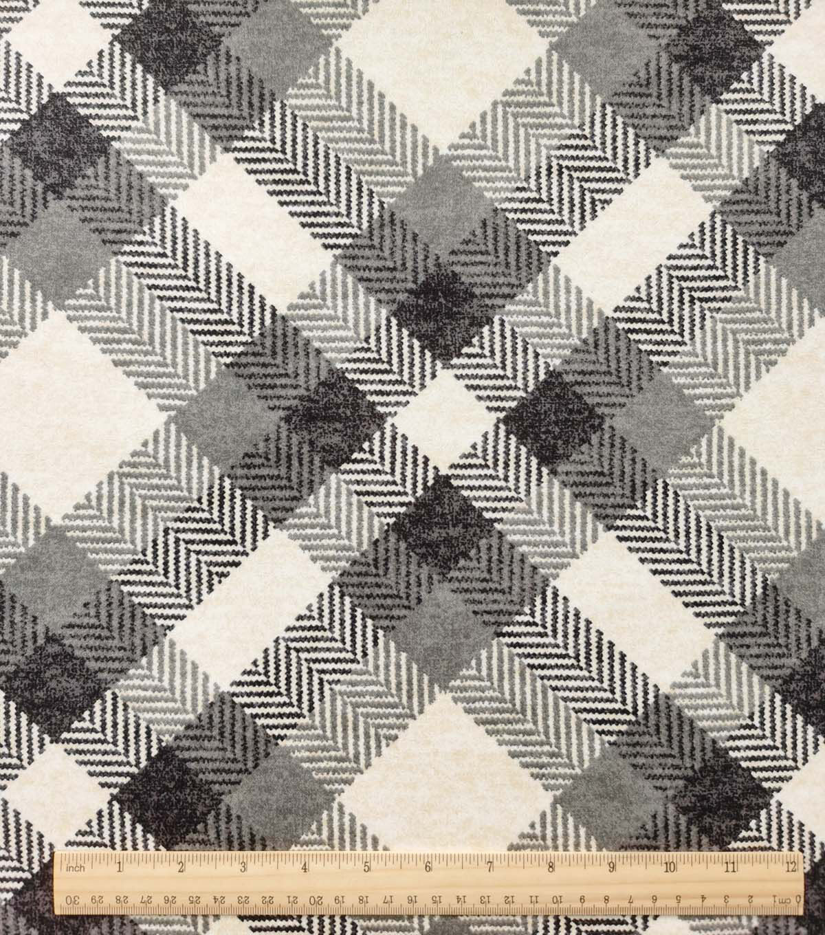 Gray Diagonal Plaid Luxe Flannel Fabric