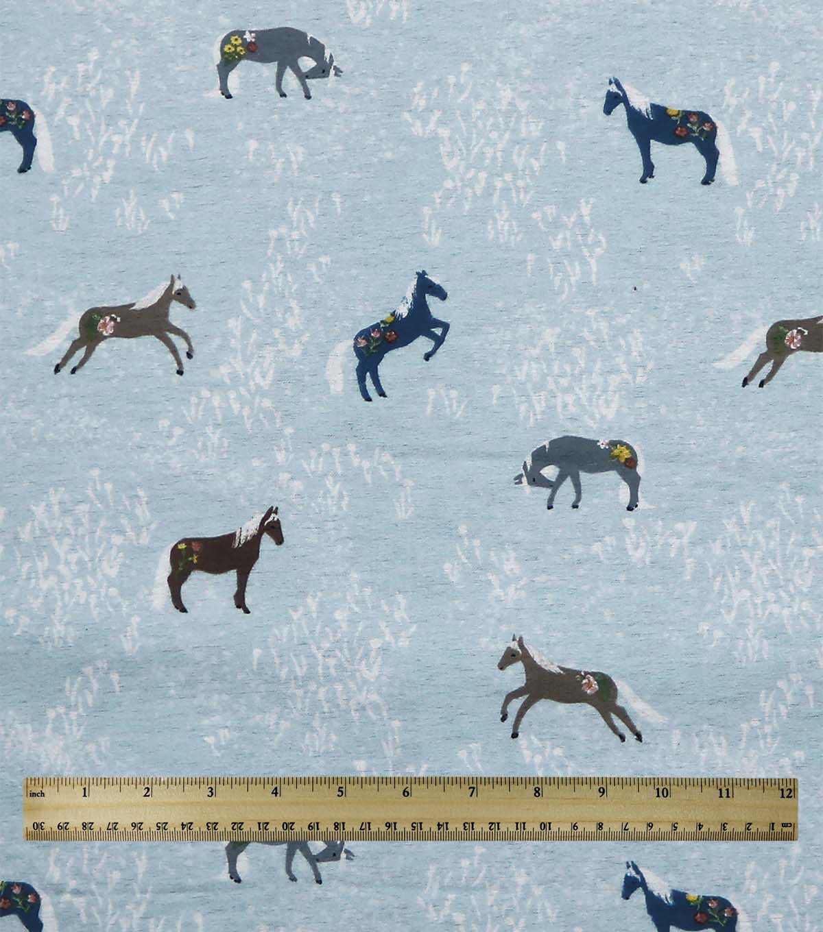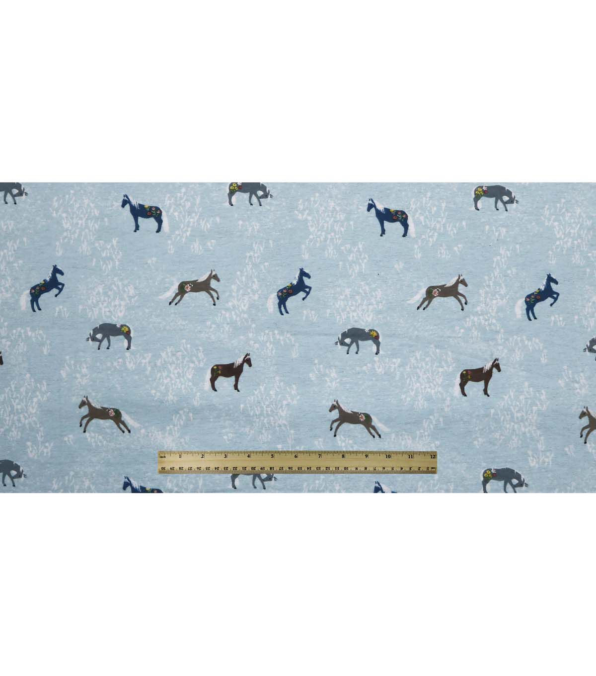 Horses on Blue Super Snuggle Flannel Fabric