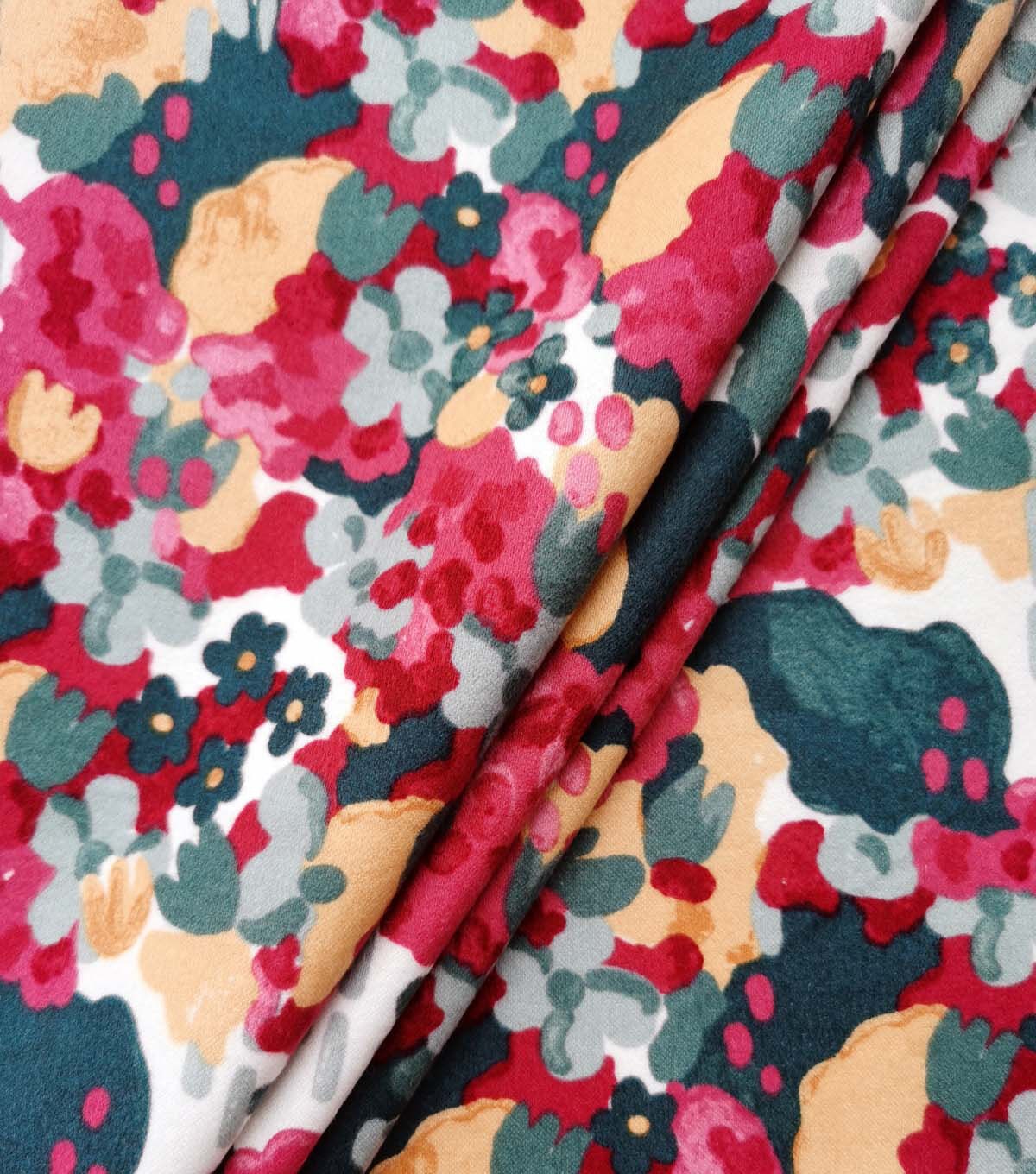 Green & Pink Abstract Floral Luxe Flannel Fabric