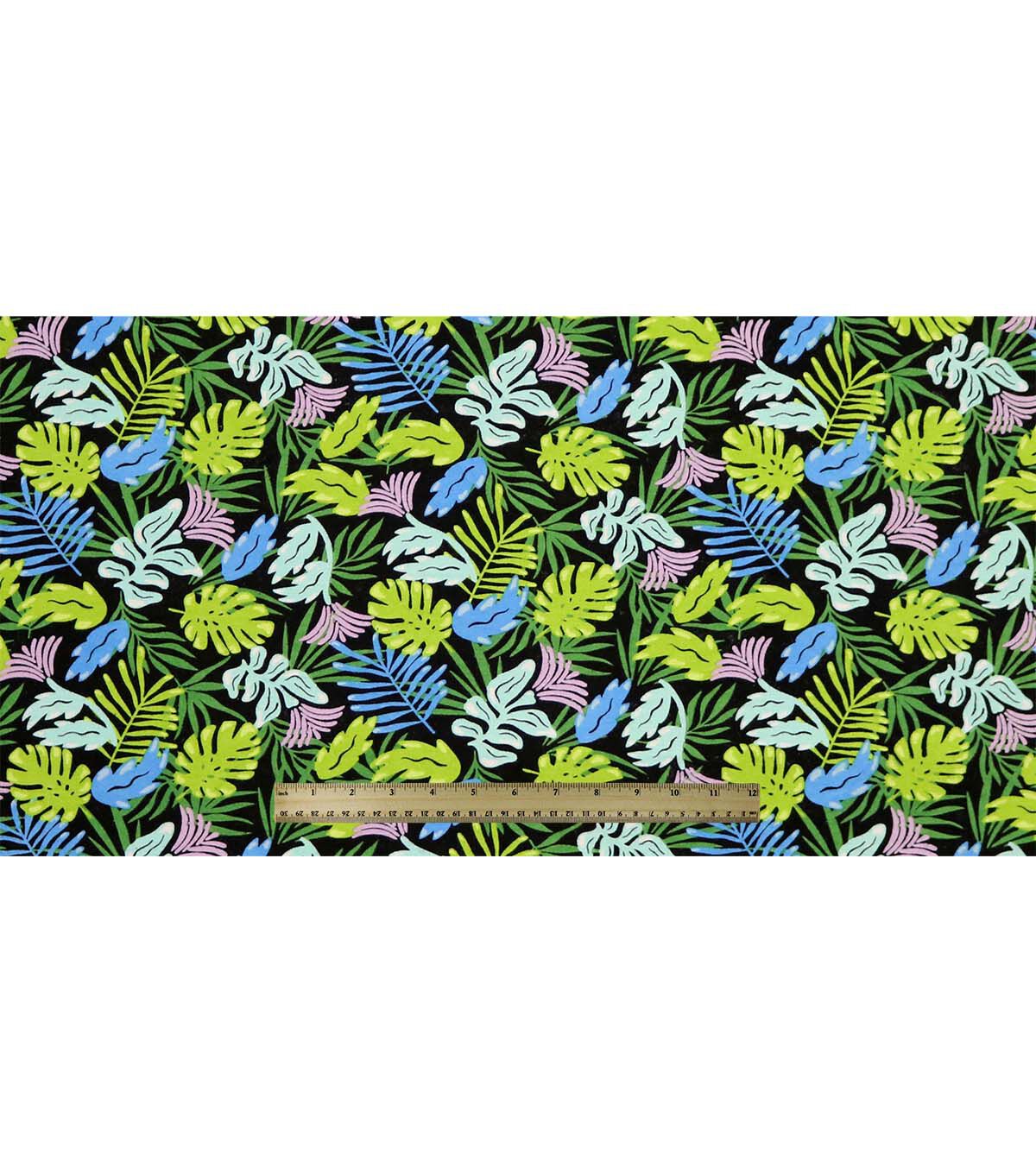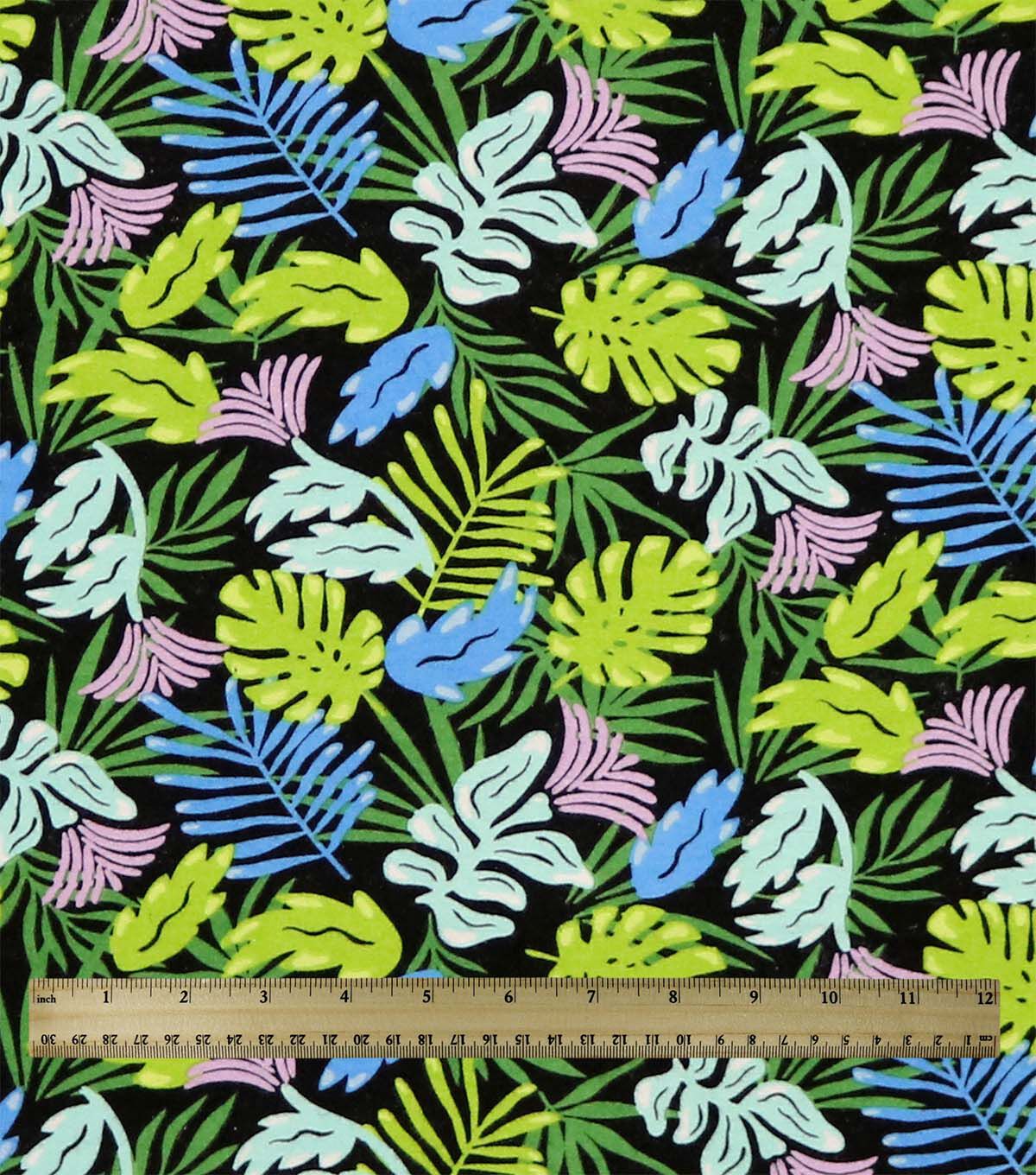 Tropical Leaves on Black Super Snuggle Flannel Fabric
