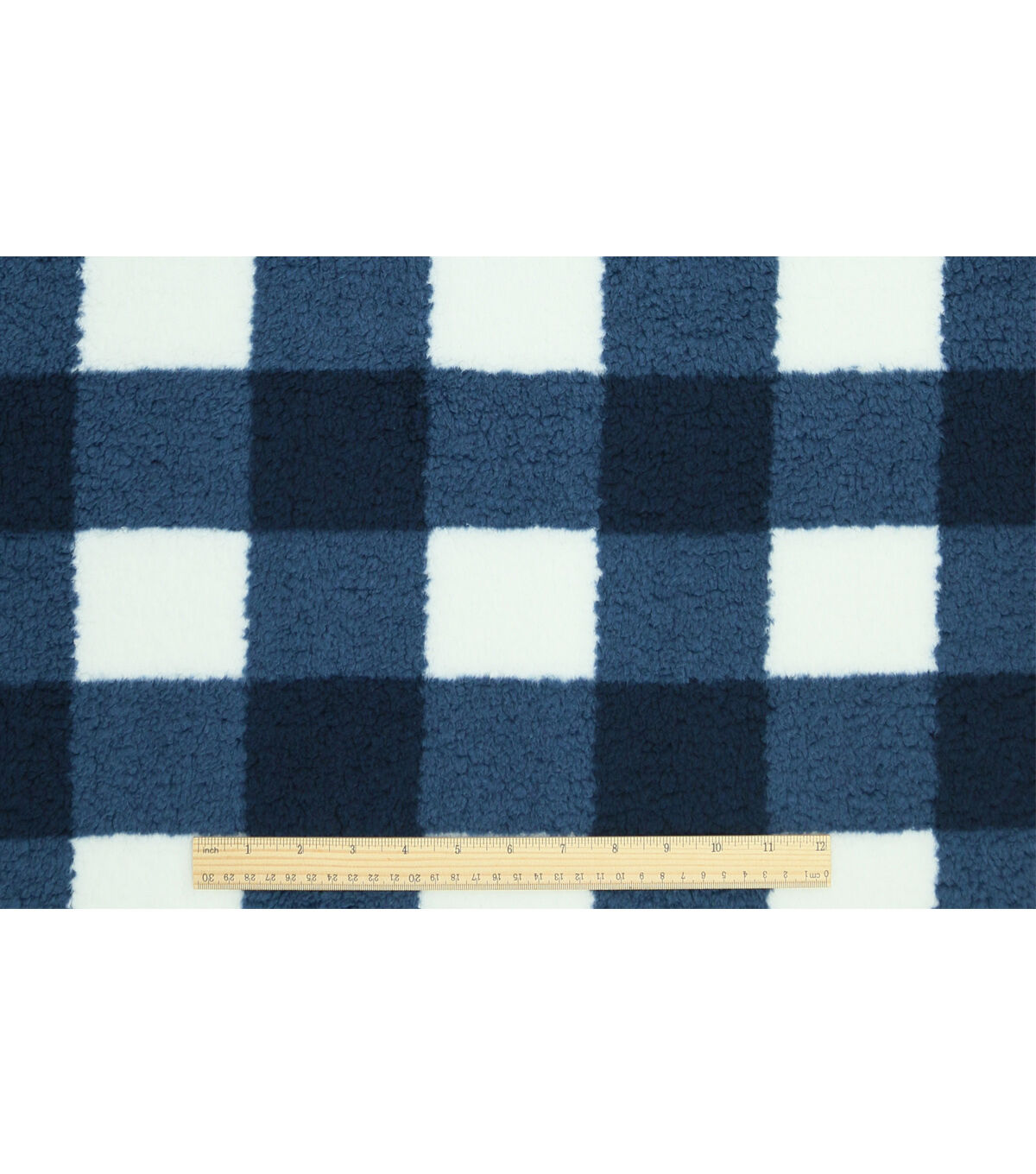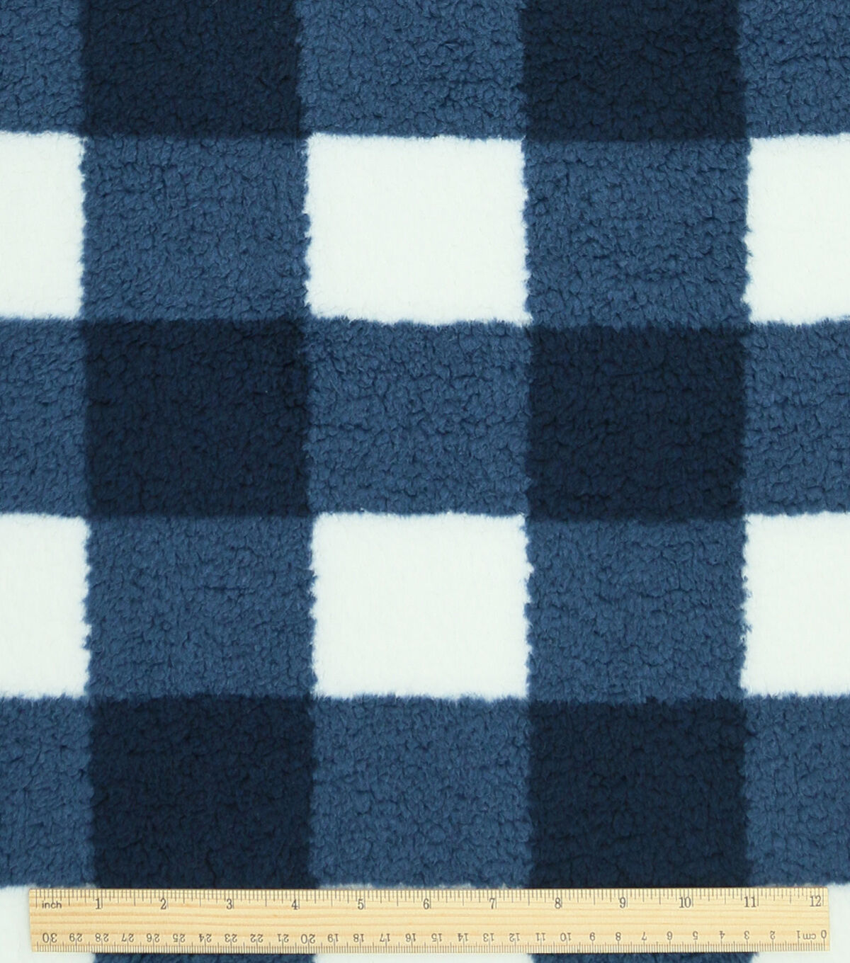 Navy Gingham Sherpa Fleece Fabric