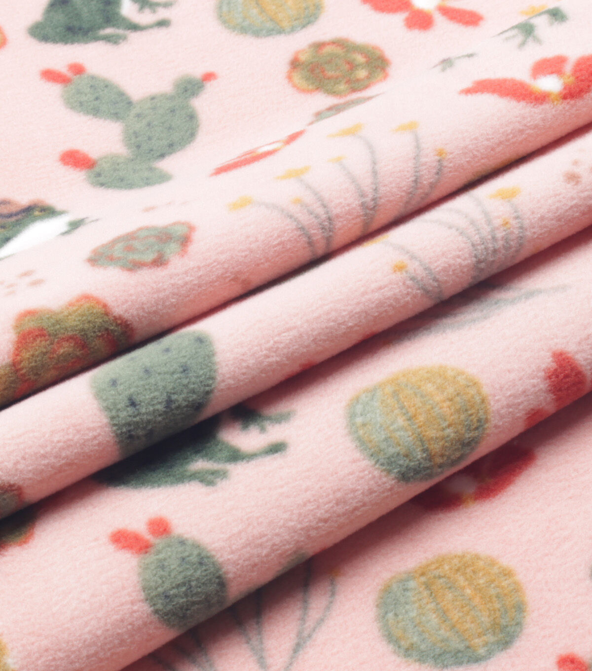 Frogs & Cacti on Pink Anti Pill Fleece Fabric