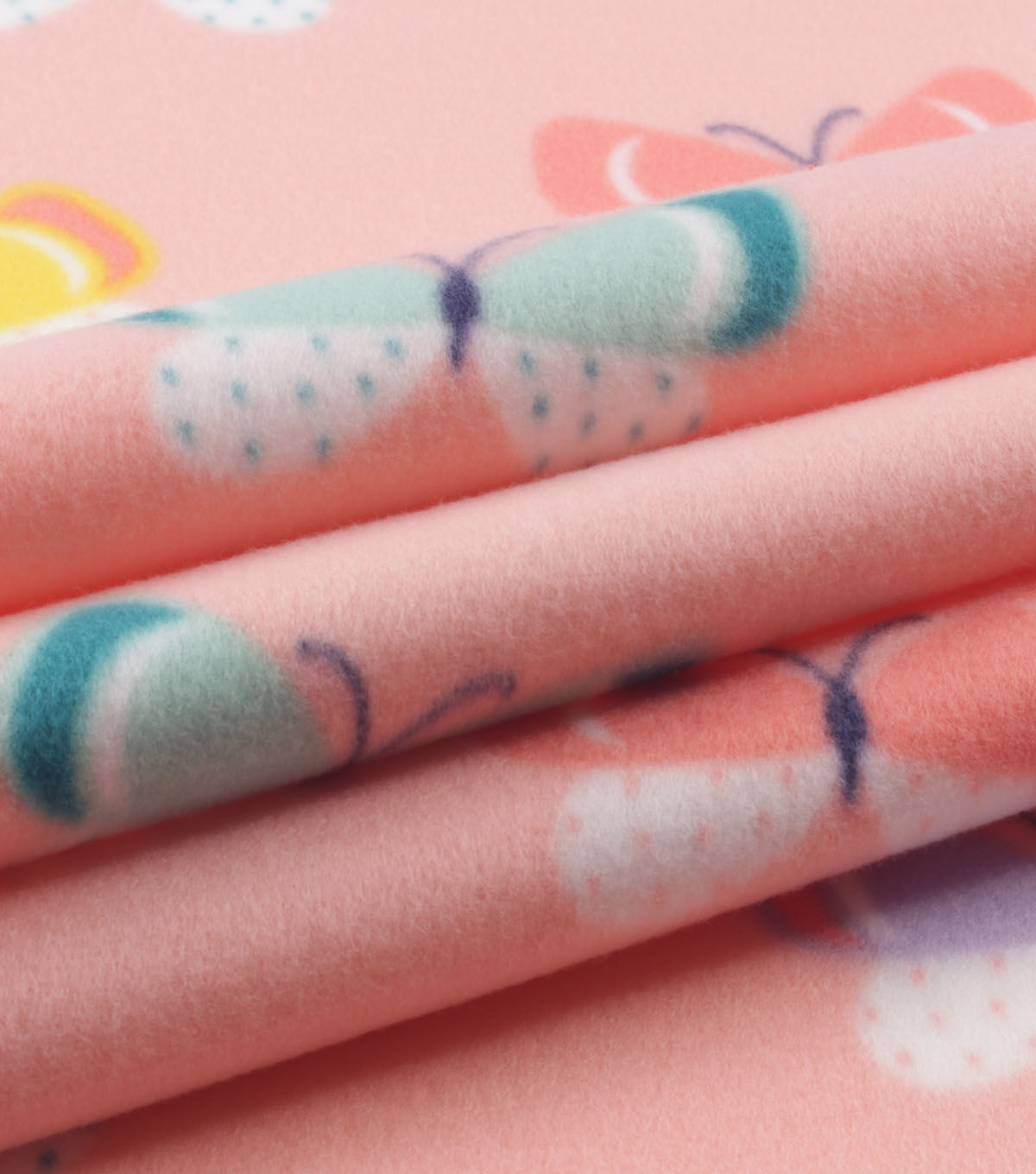 Flying Butterflies on Pink Blizzard Fleece Fabric