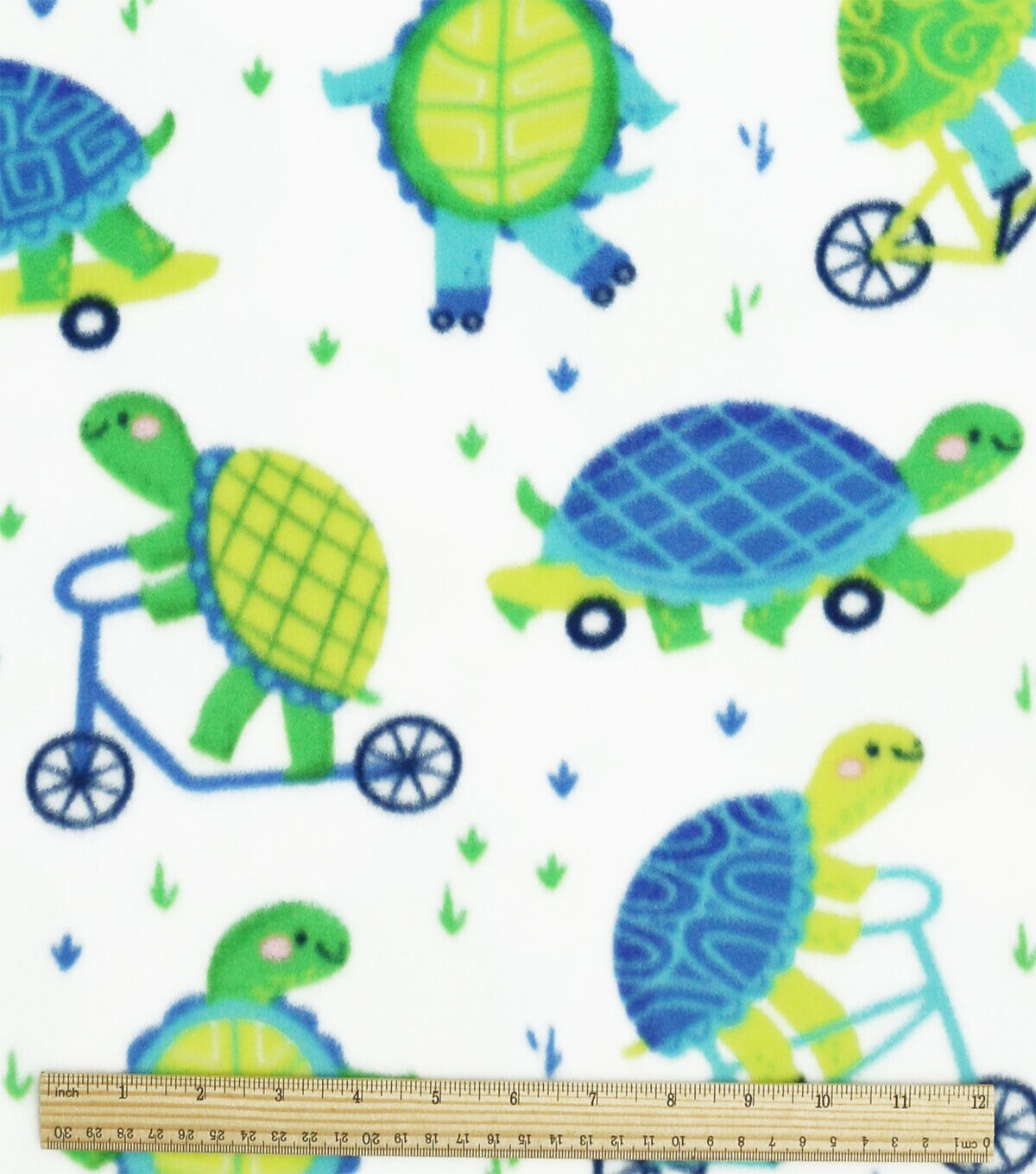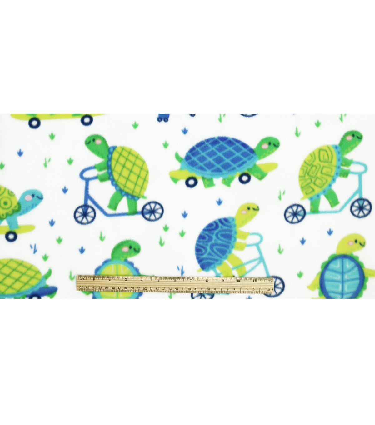 Green Turtles on Bikes Anti Pill Plush Fleece Fabric