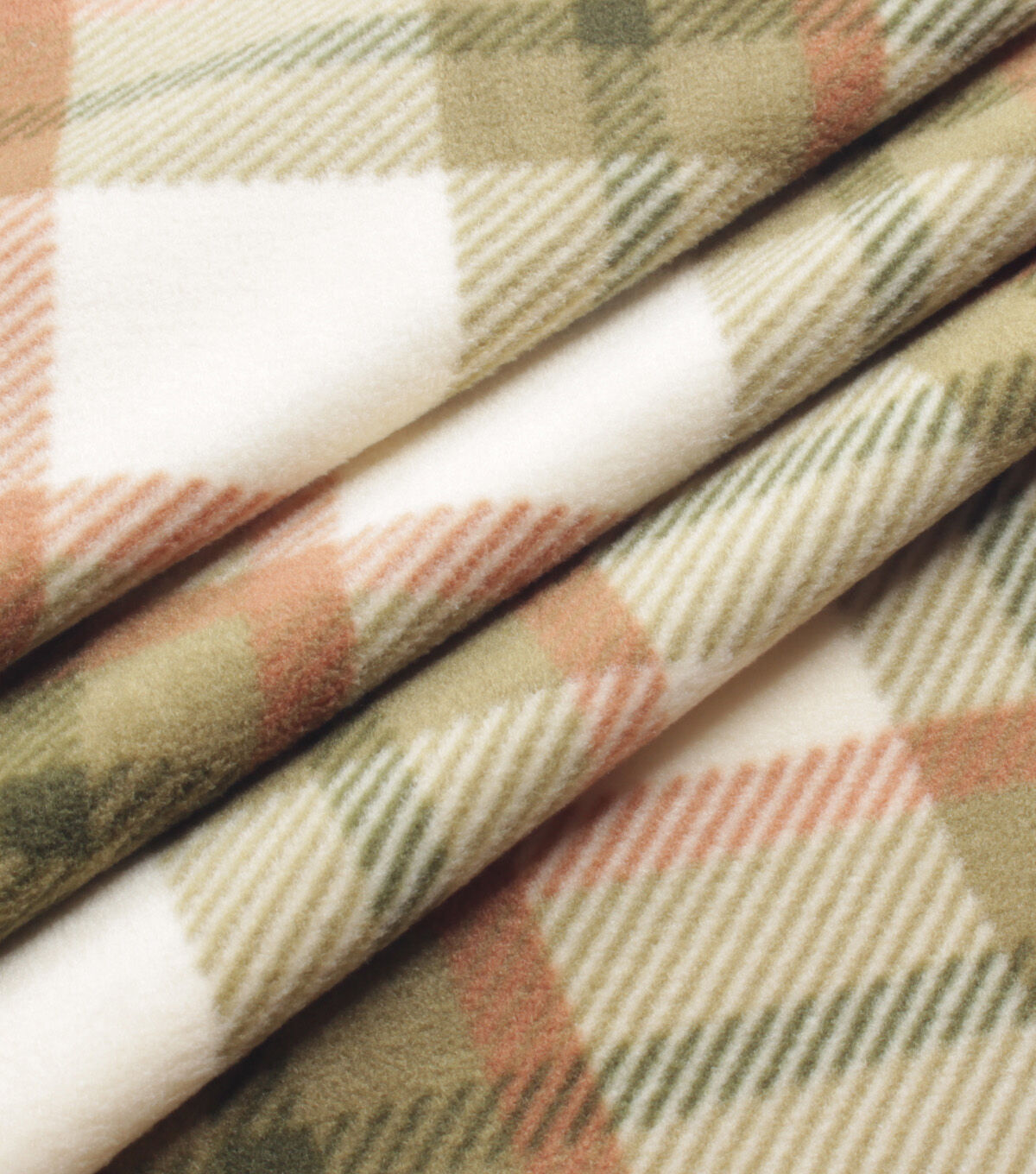 Cream & Olive Plaid Anti Pill Fleece Fabric