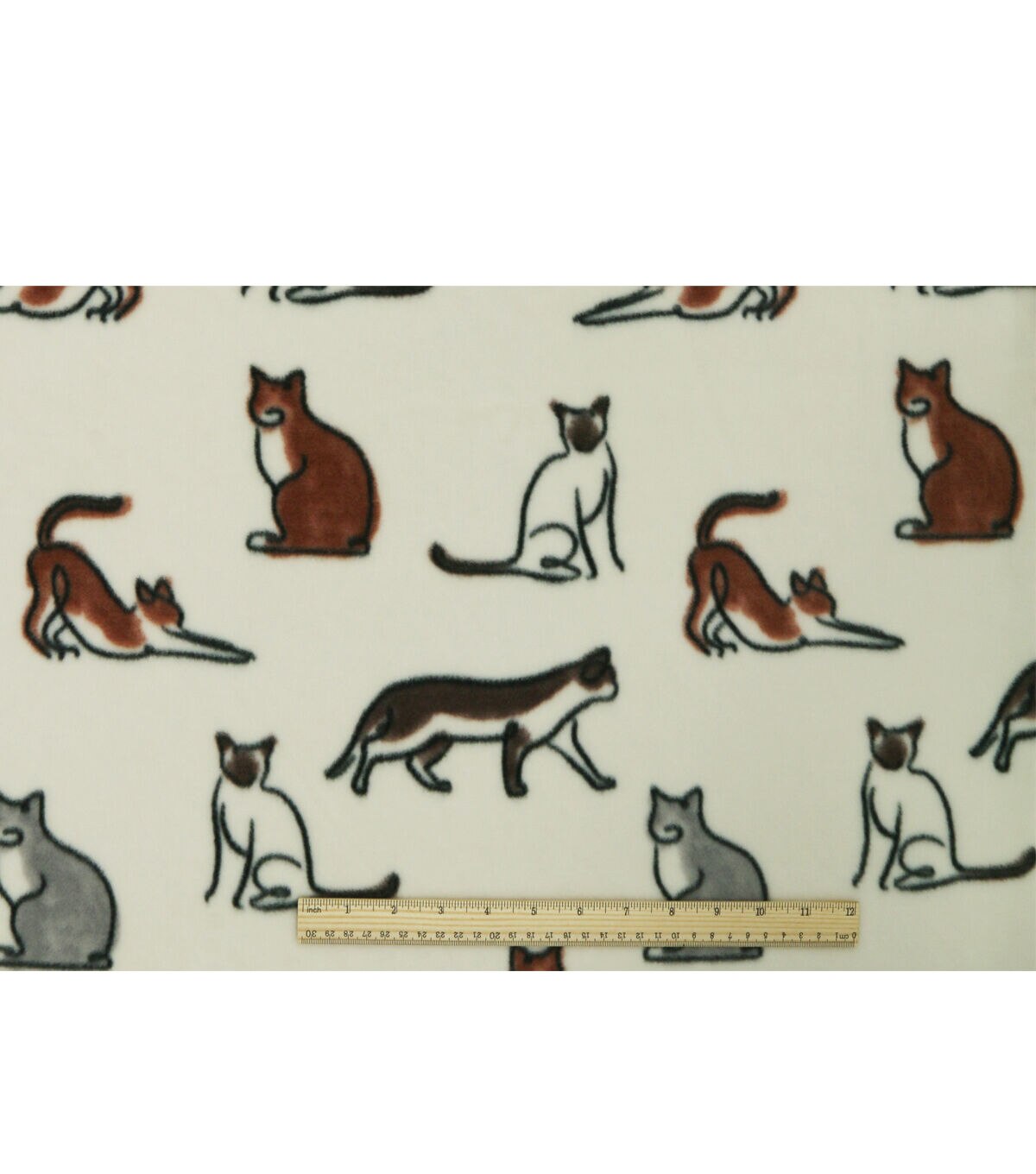 Multiple Sketched Cats on Ivory Anti Pill Fleece Fabric