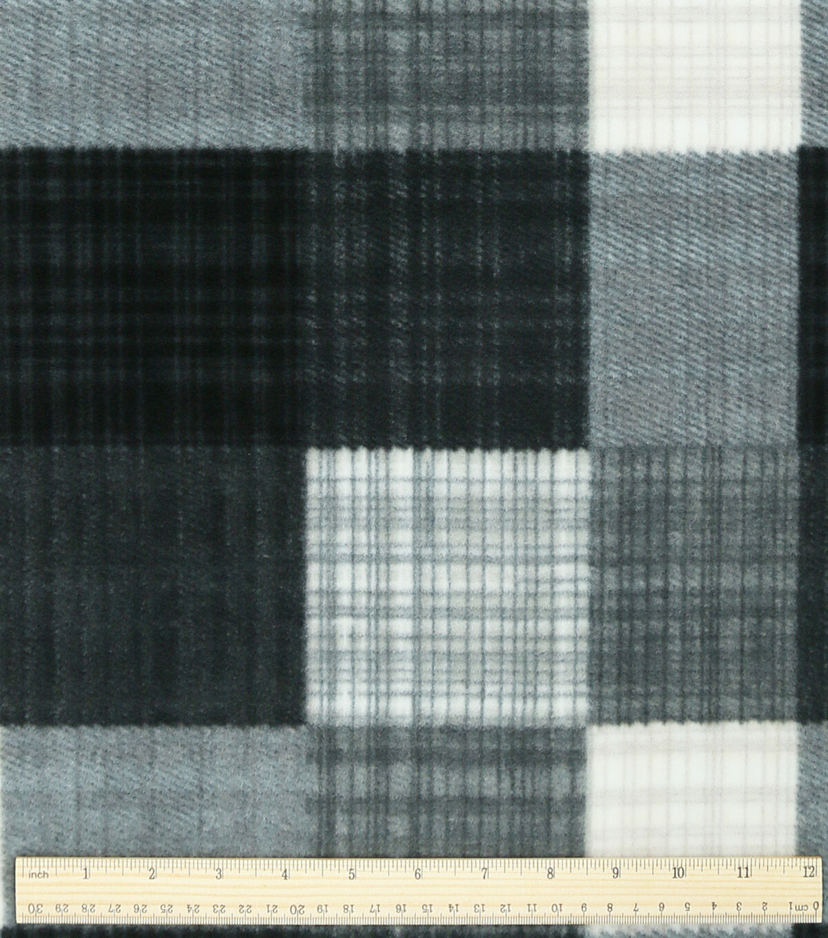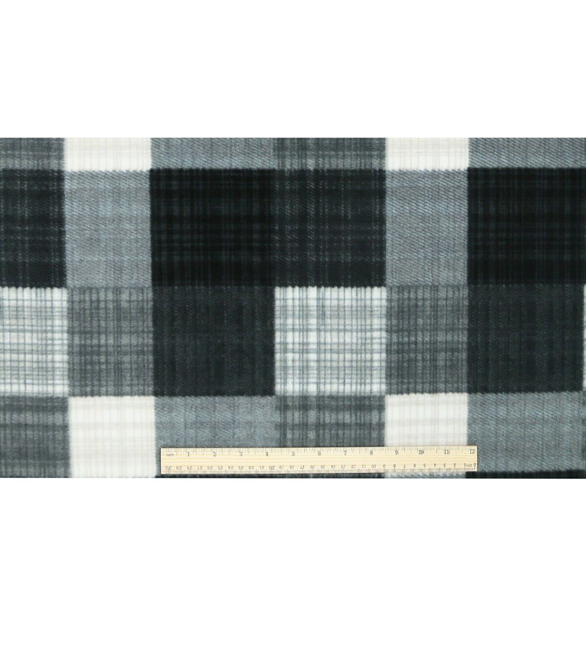 Black & Gray Sketched Plaid Anti Pill Fleece Fabric