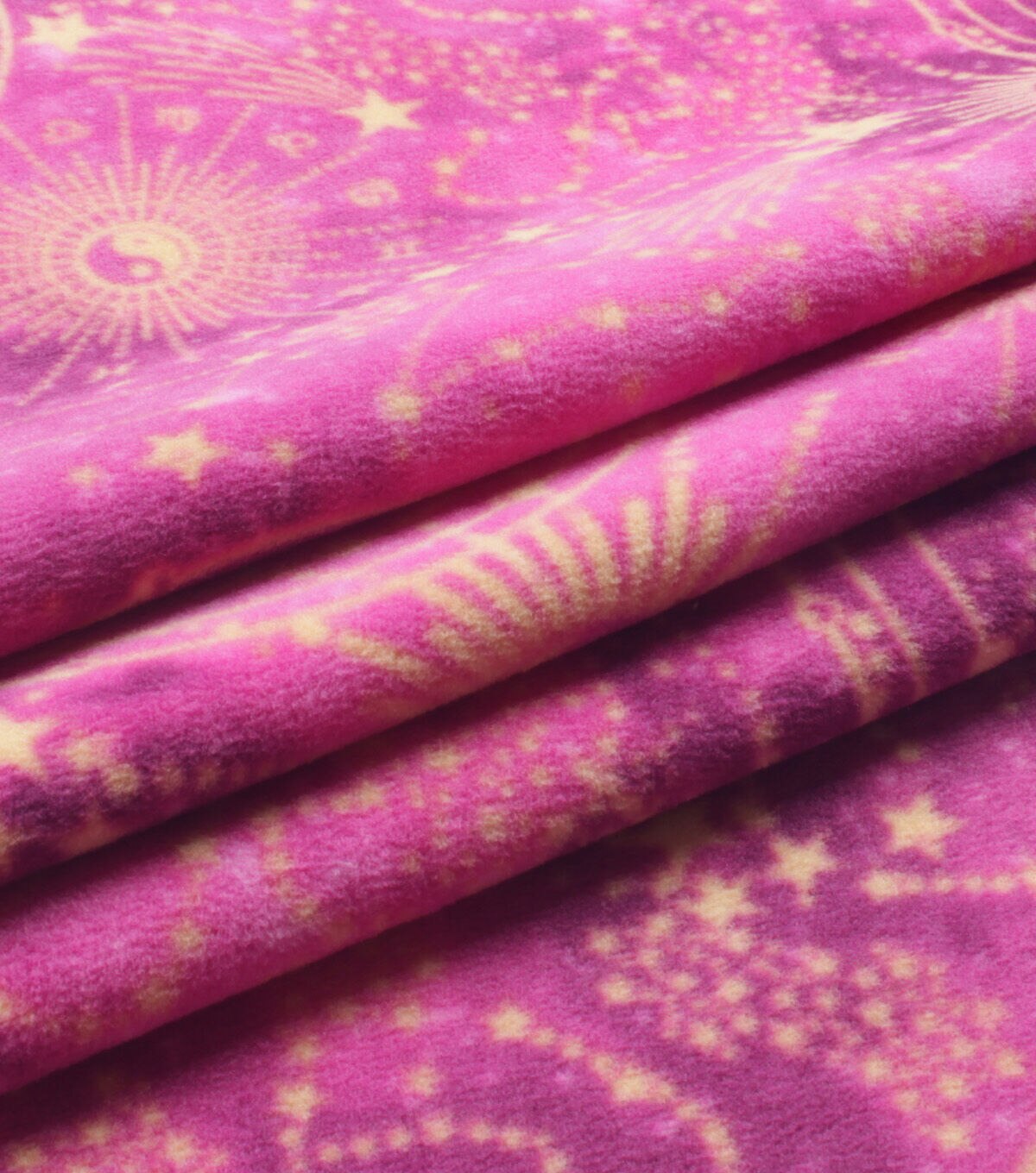 Celestial Zodiac on Pink Anti Pill Fleece Fabric