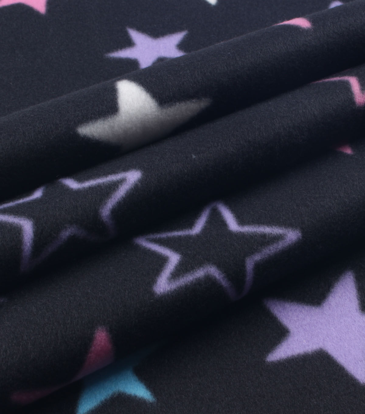 Stars on Black Blizzard Fleece Fabric
