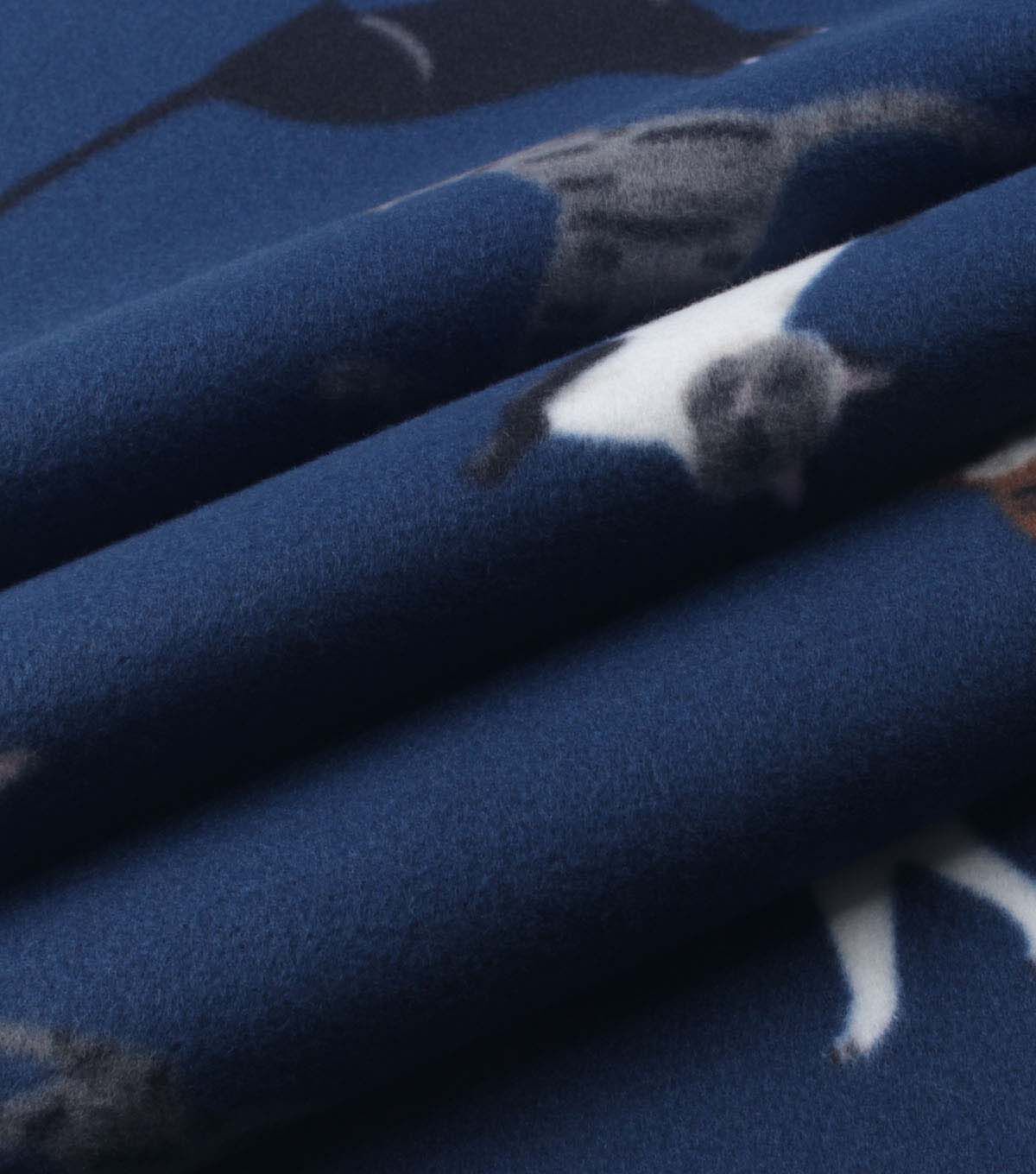 Sitting Cats on Dark Blue Blizzard Fleece Fabric