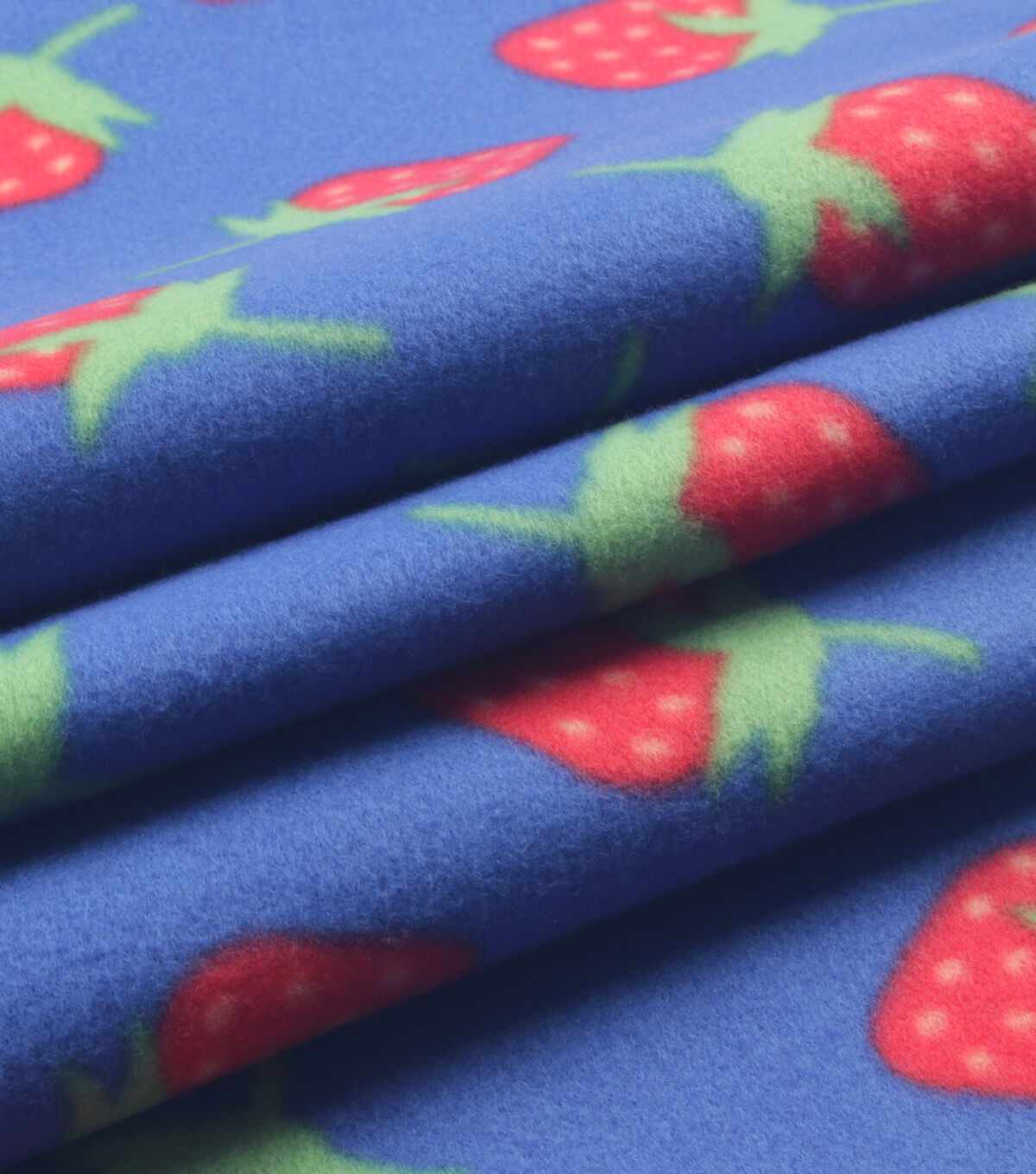 Strawberries on Blue Blizzard Fleece Fabric