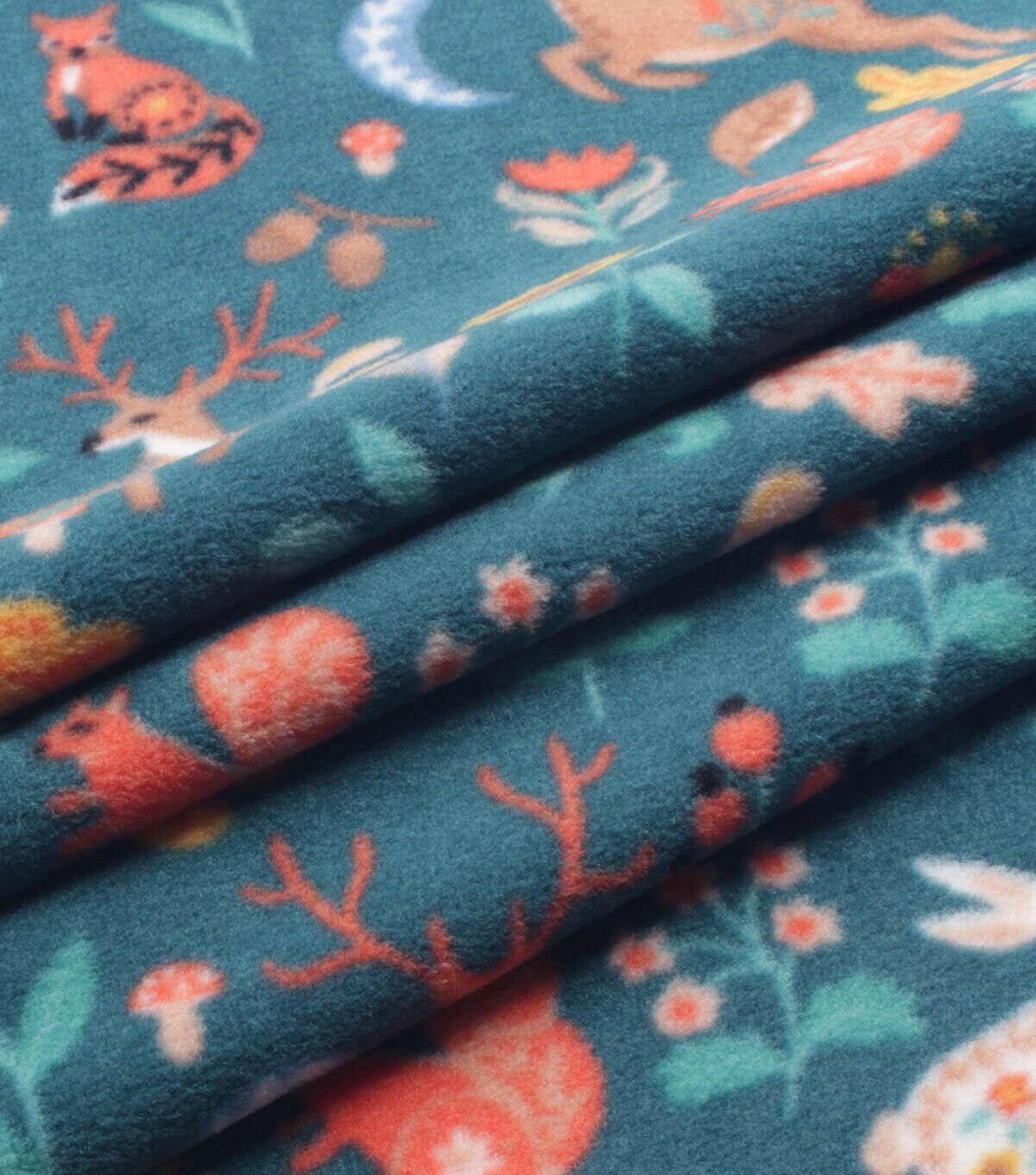 Folk Woodland Animals on Teal Anti Pill Fleece Fabric