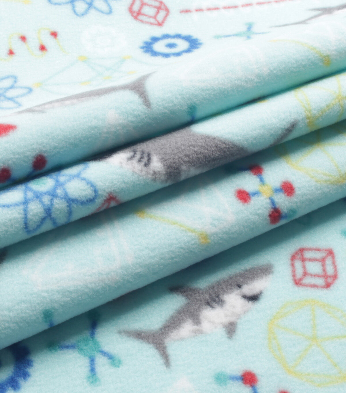 Science & Sharks on Blue Anti Pill Fleece Fabric