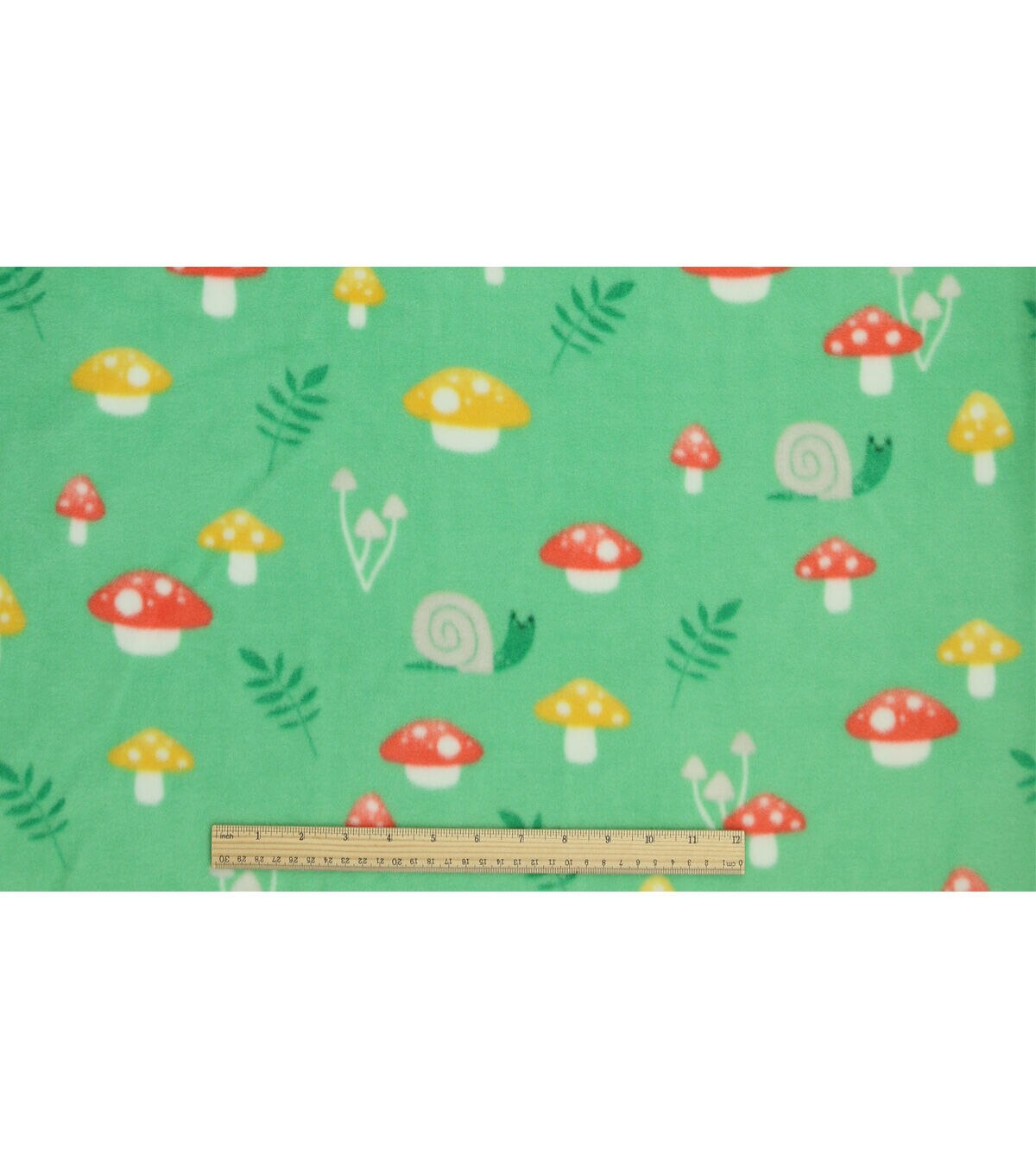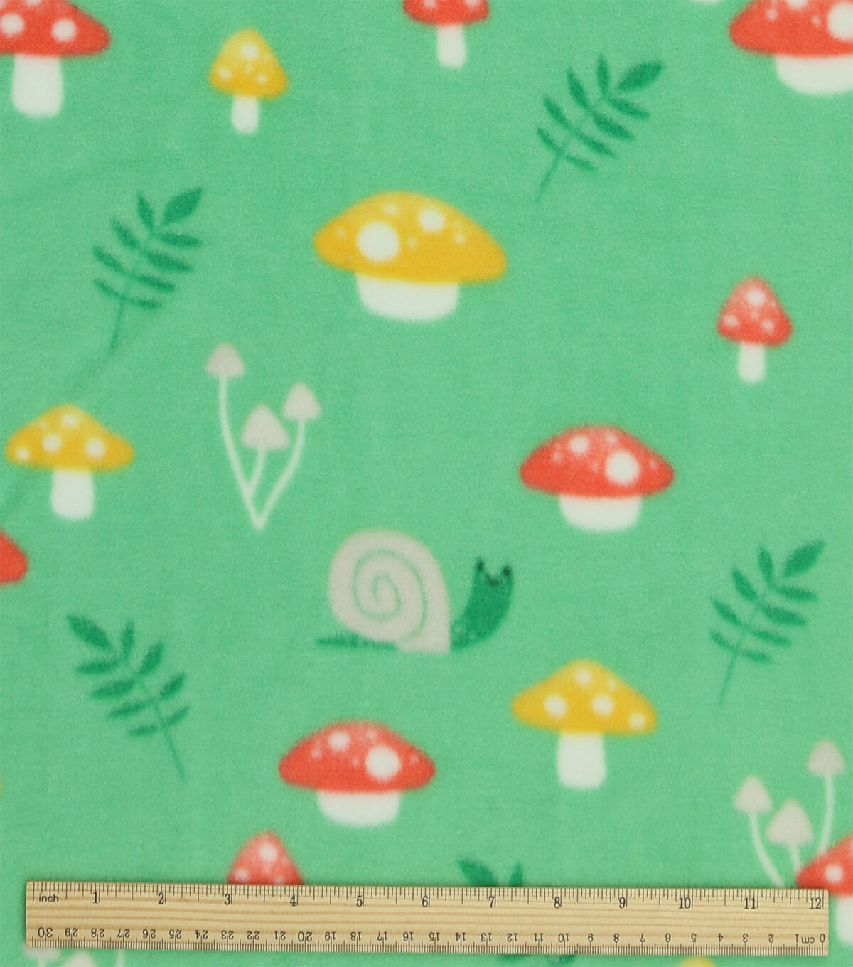 Spring Mushrooms on Green Anti Pill Plush Fleece Fabric by POP!
