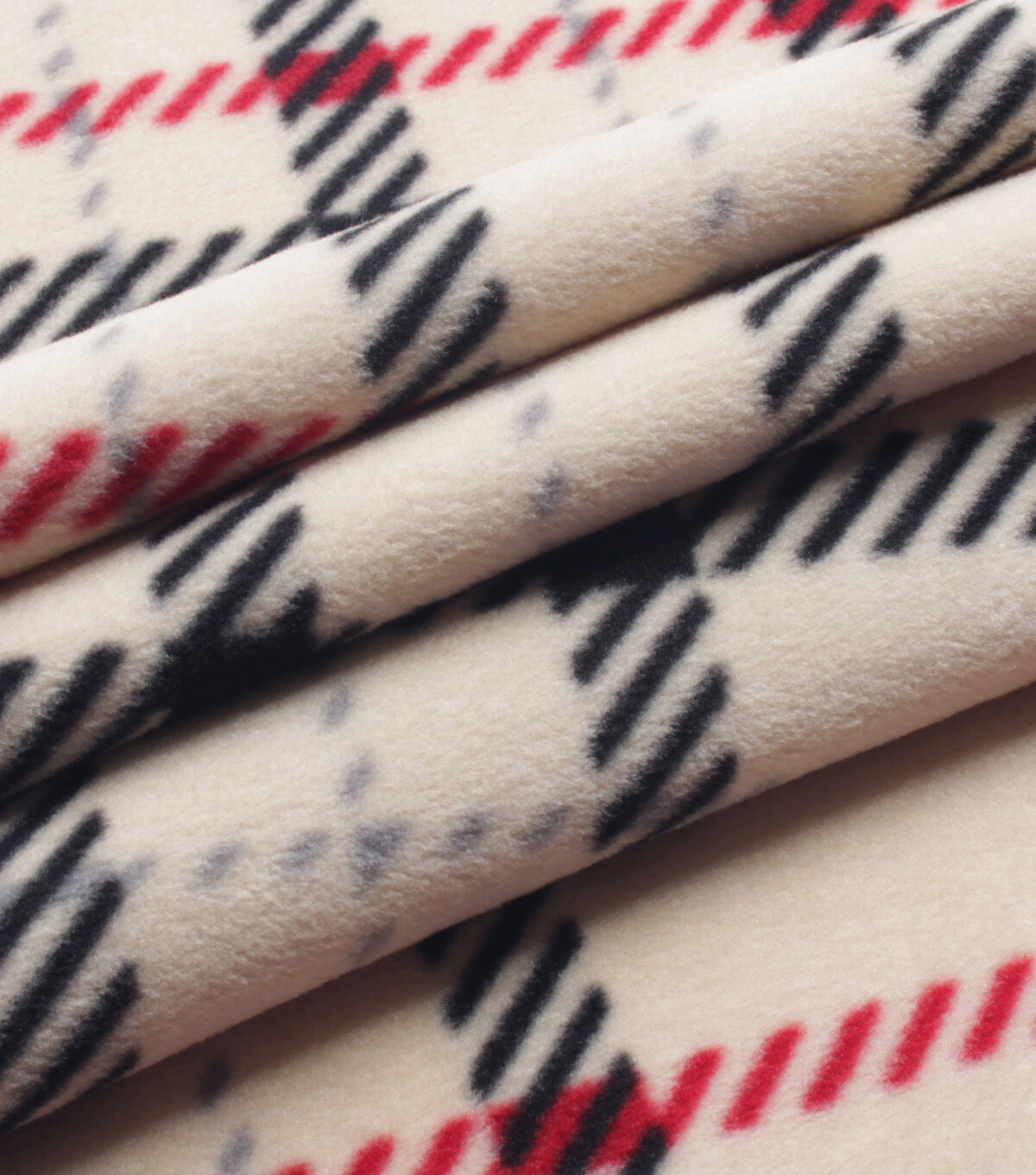 Cream & Black Plaid Anti Pill Fleece Fabric