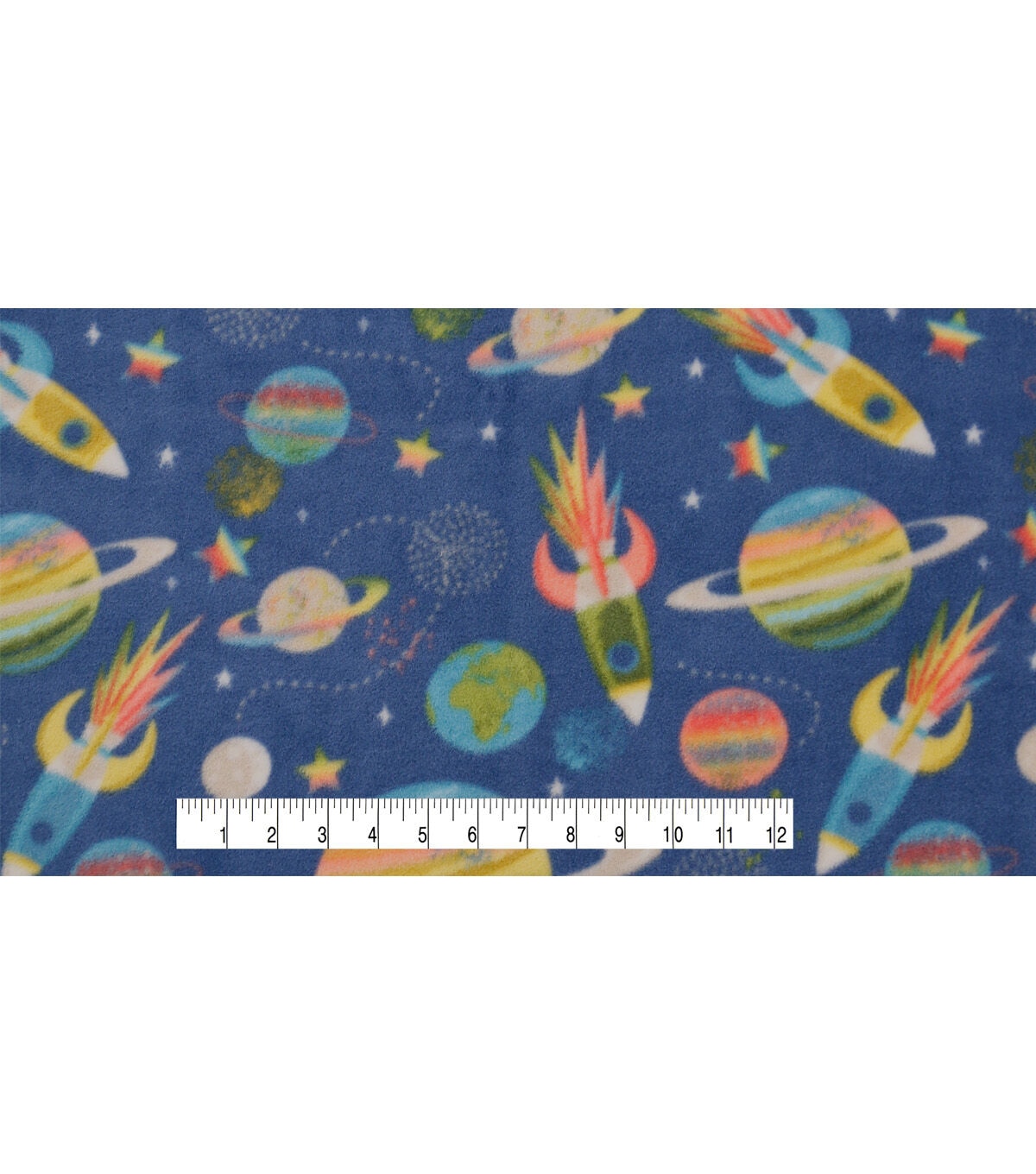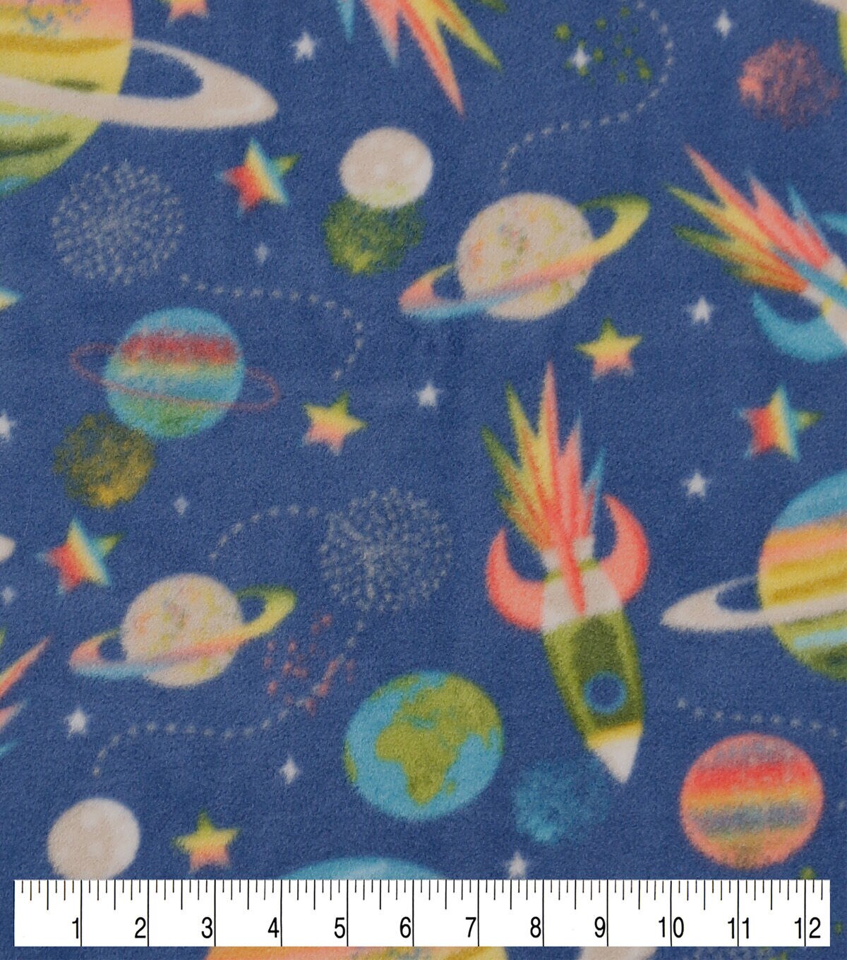 Spaceships & Planets on Blue Anti Pill Fleece Fabric