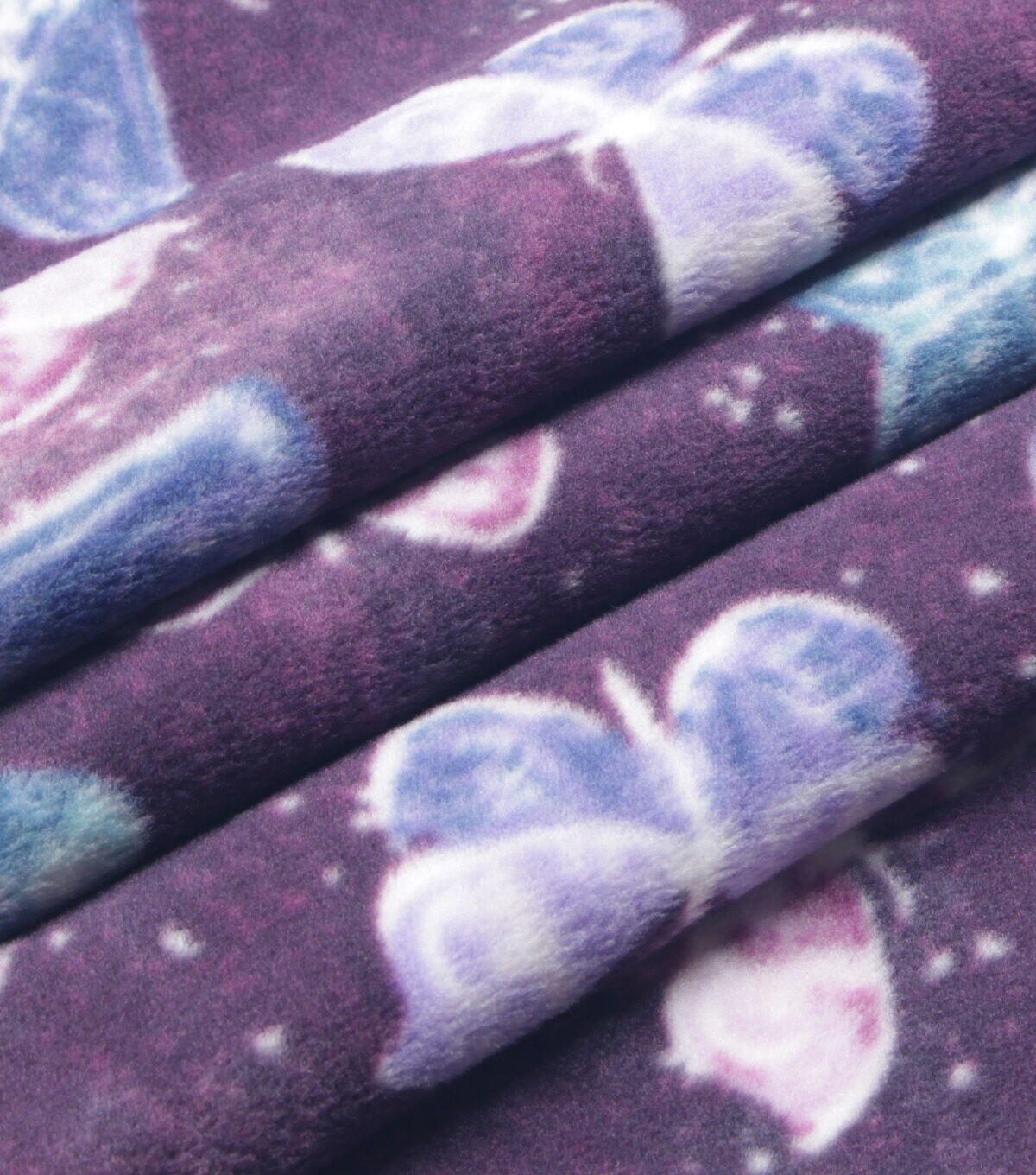 Galaxy Butterflies on Purple Anti Pill Fleece Fabric