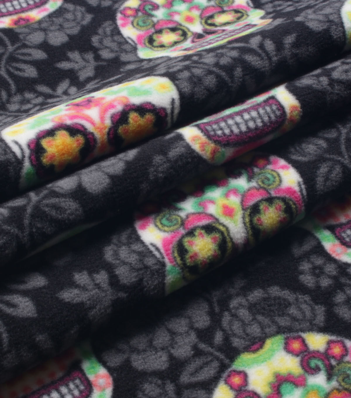 Skull Print With Sketched Floral on Black Anti Pill Plush Fleece Fabric