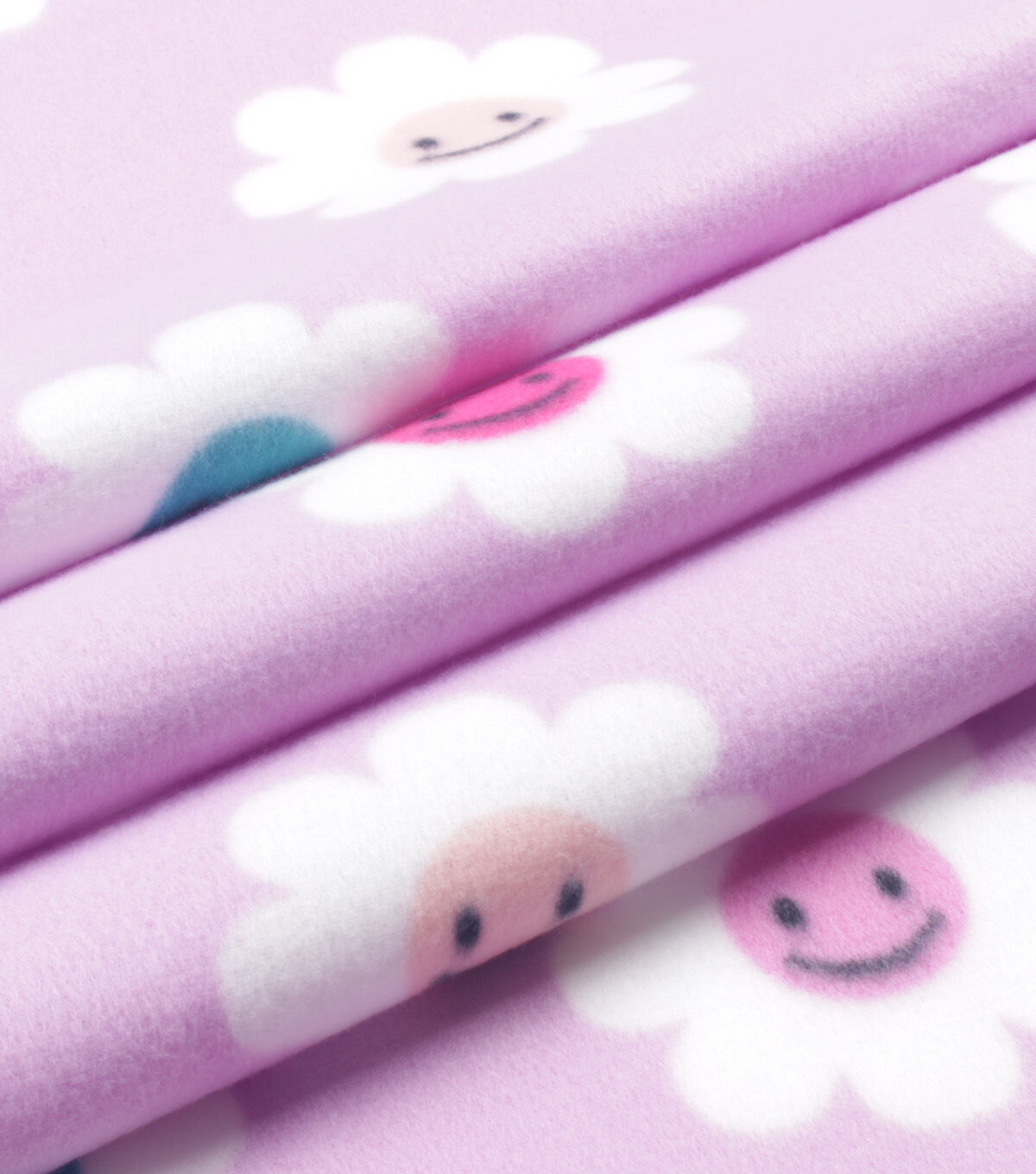 Purple Smiley Face Flowers Blizzard Fleece Fabric